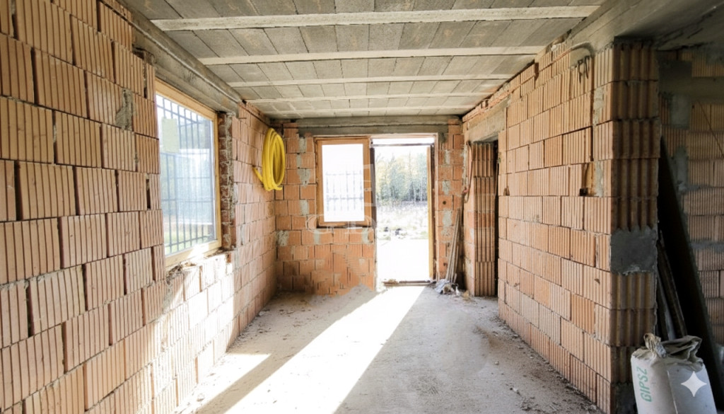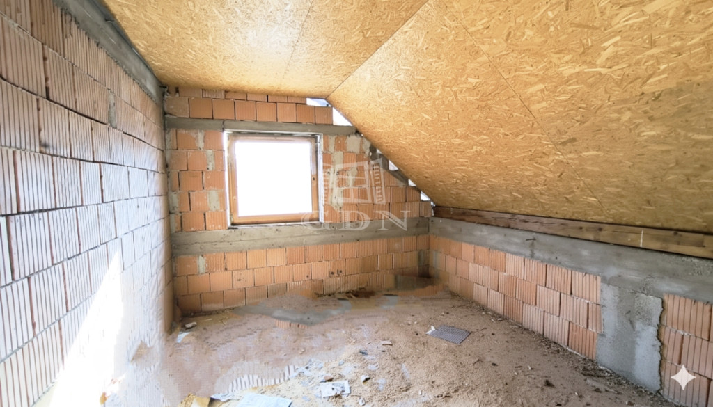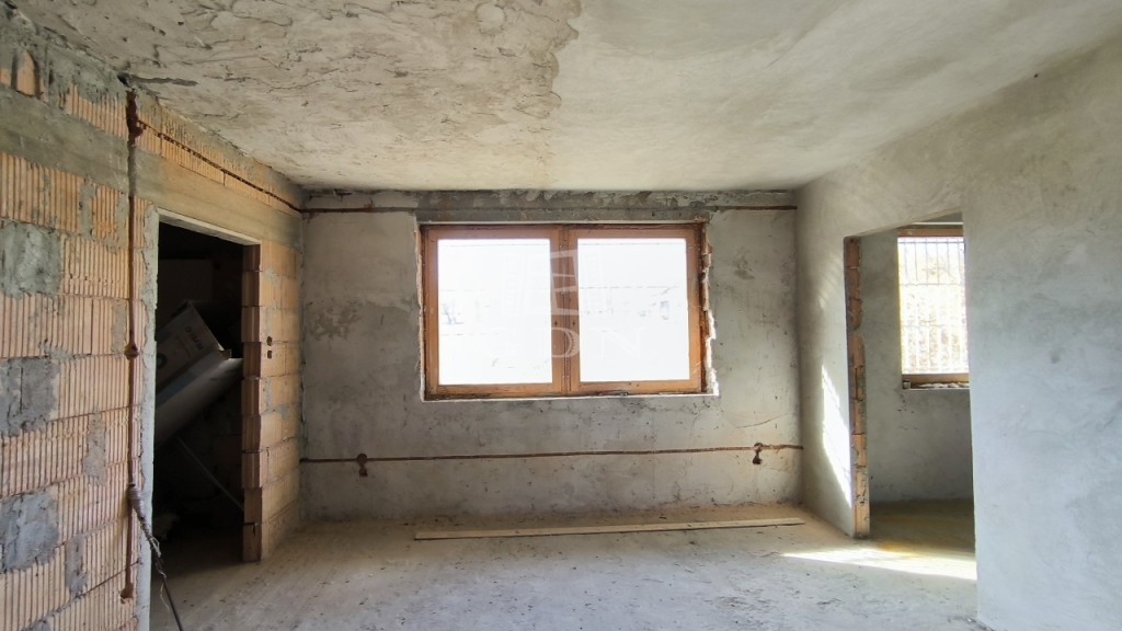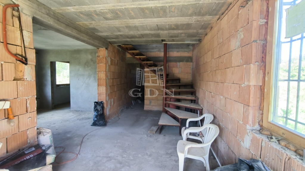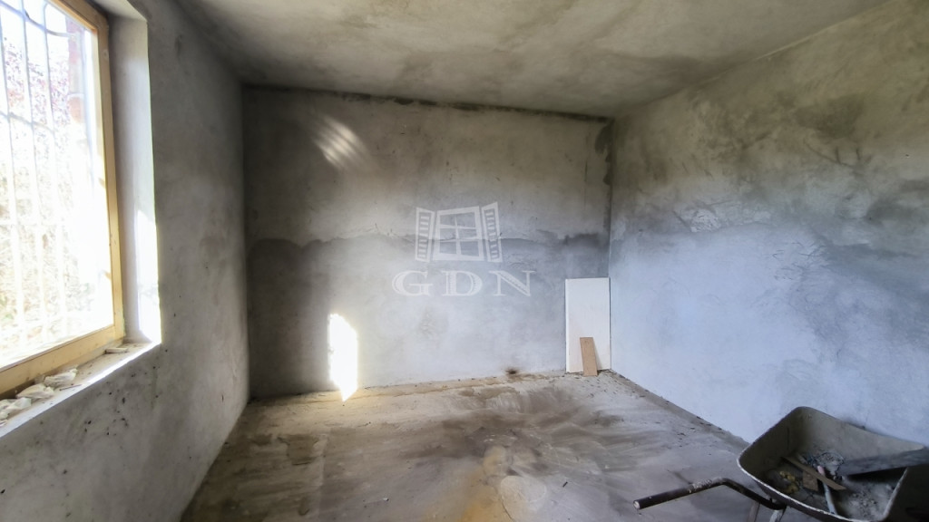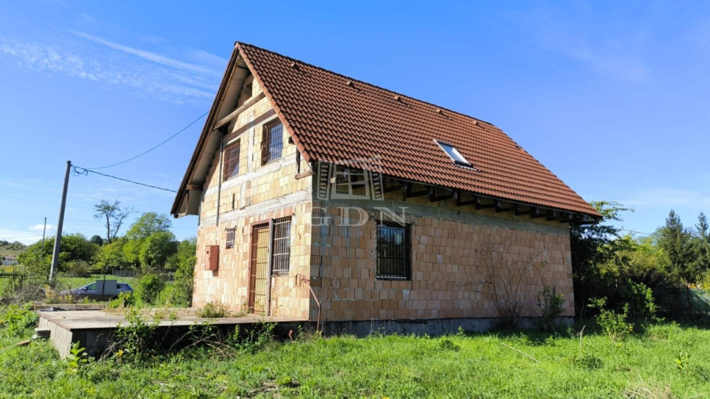 Domonyvölgy csendes, átmenő forgalomtól mentes utcájában eladó egy befejezetlen, 94 nm-es családi ház jellegű ingatlan 2141 nm-es telken!
