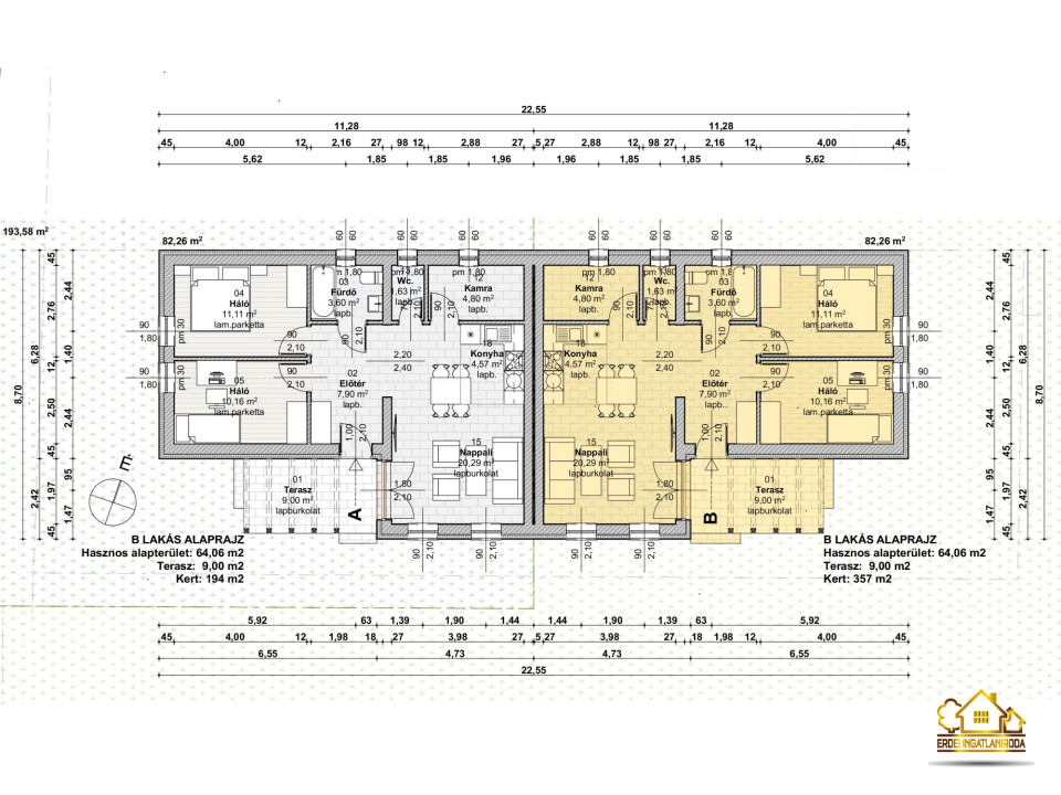 Dömsödön eladó egy nettó 64 m²-es, ÚJ ÉPÍTÉSŰ, egyszintes UTCAFRONTI ikerházi lakás 357 m²-es telekkel.