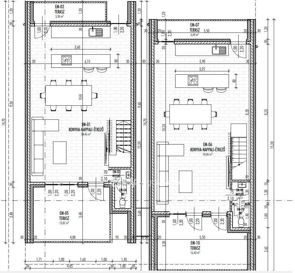 Amerikai konyhás nappali 54,9 m2