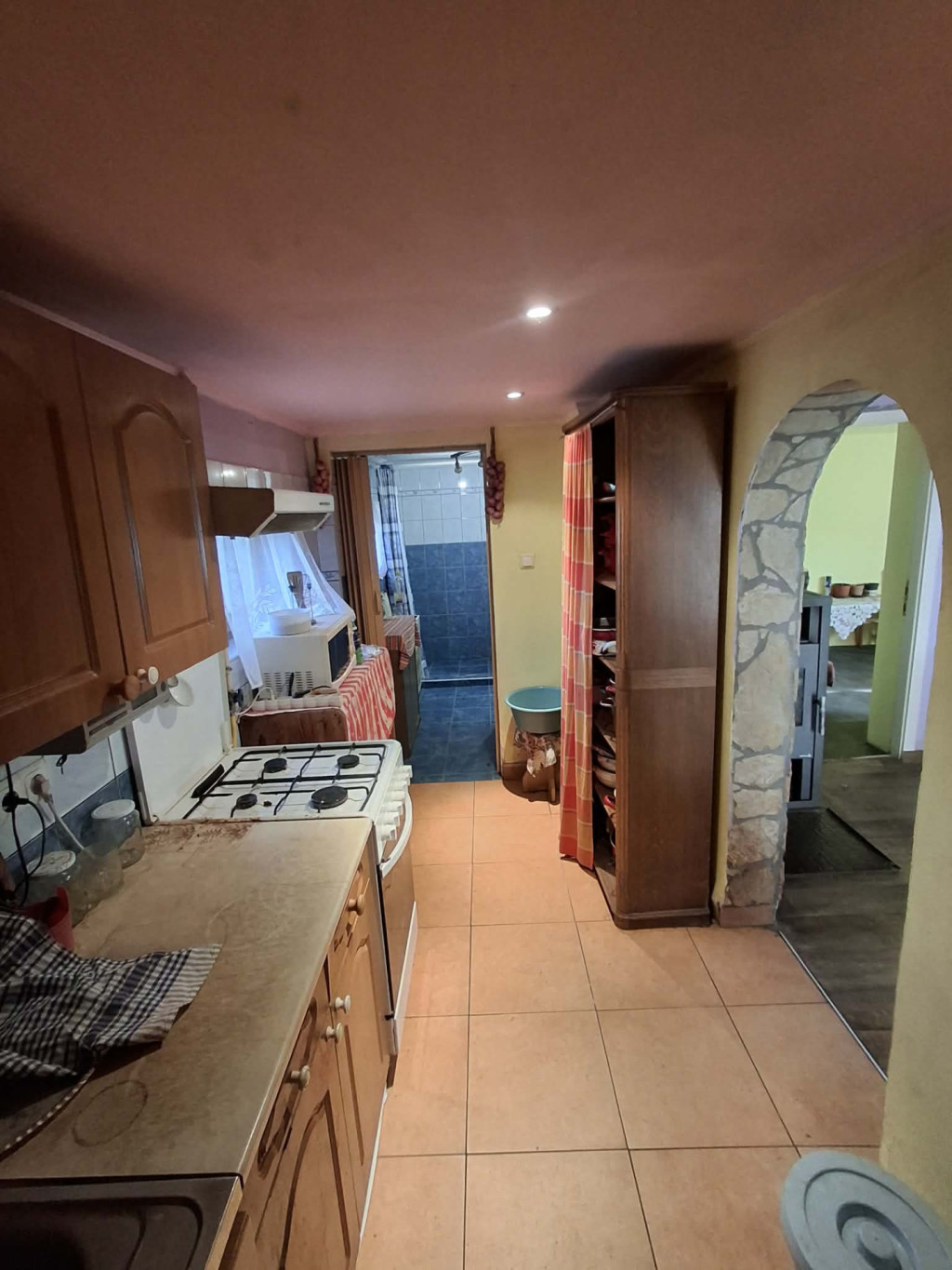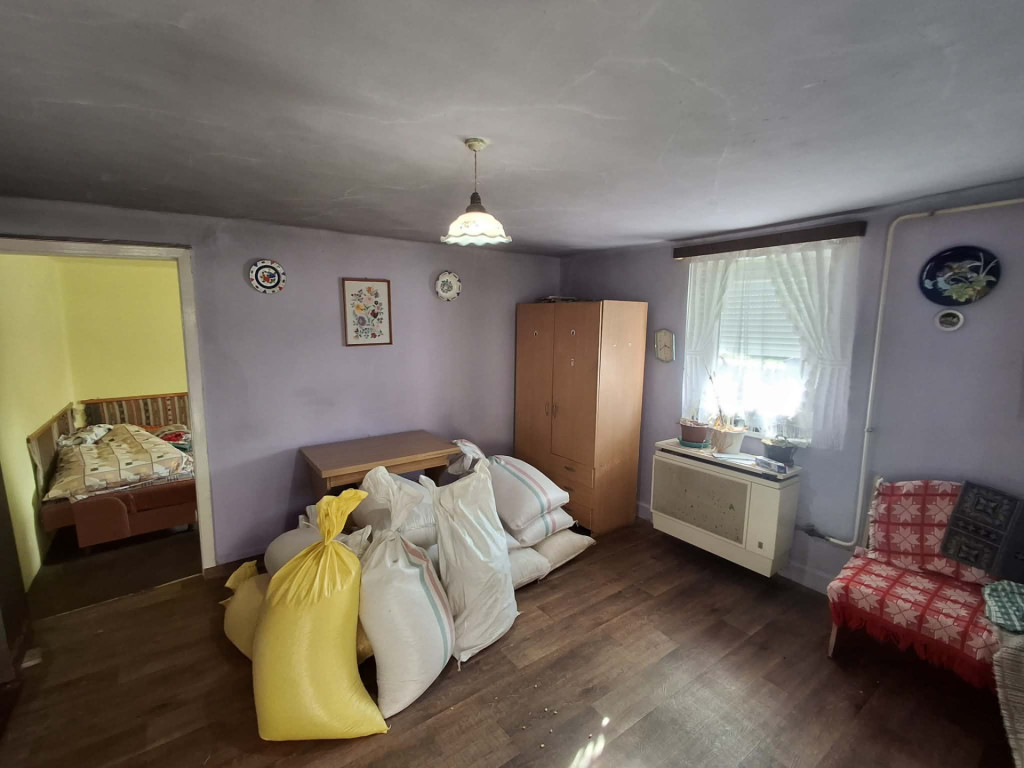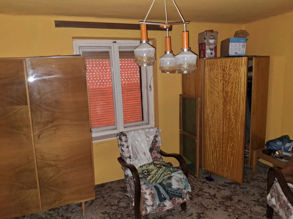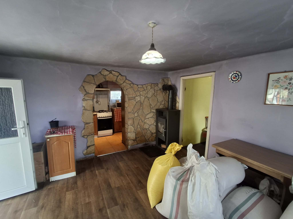 A másik ingatlan kb.60 m2es, salakblokkból épült. Szerkezetileg jó állapotban van. 2 szoba, konyha, fürdőszoba található benne. Ide az összes közmű be van vezetve. A nyílászárók egy része műanyag, másik része fa. Fűtése gázkonvektorral és kandallóval is megoldott. Tetőszerkezete fa födém, cserép borítással.