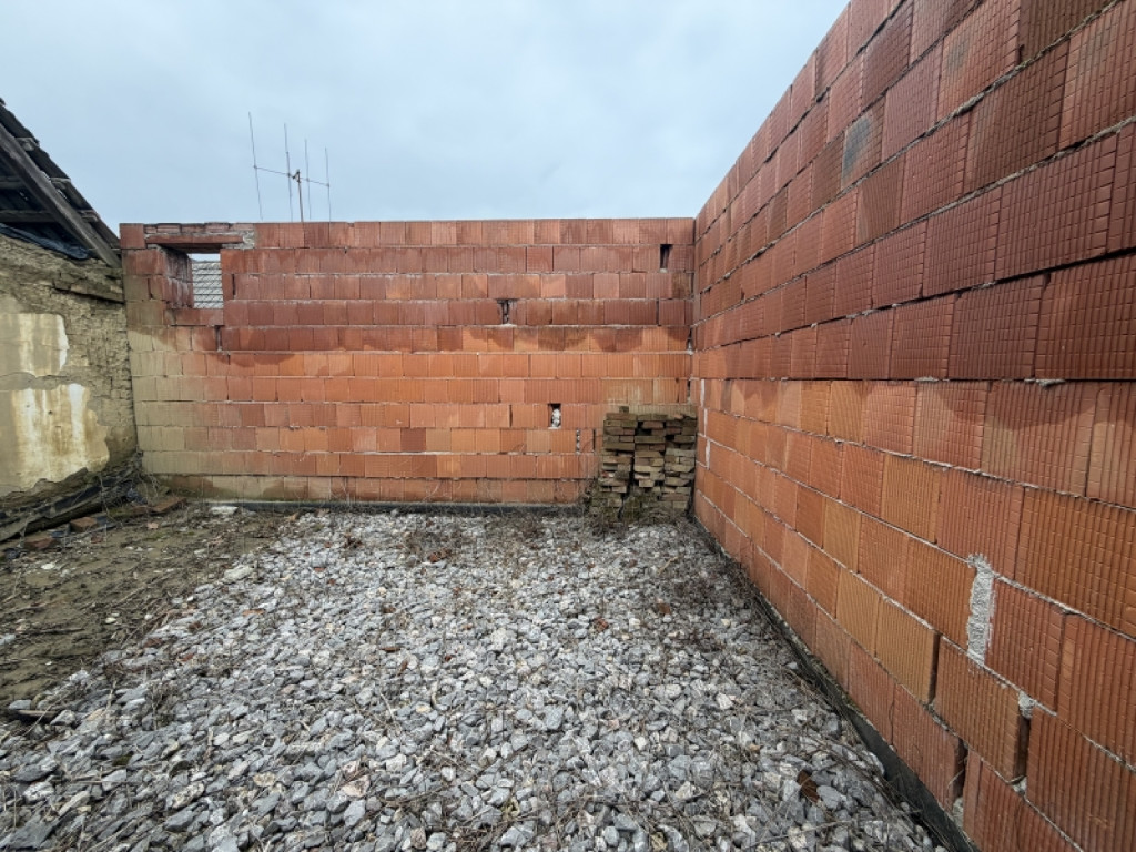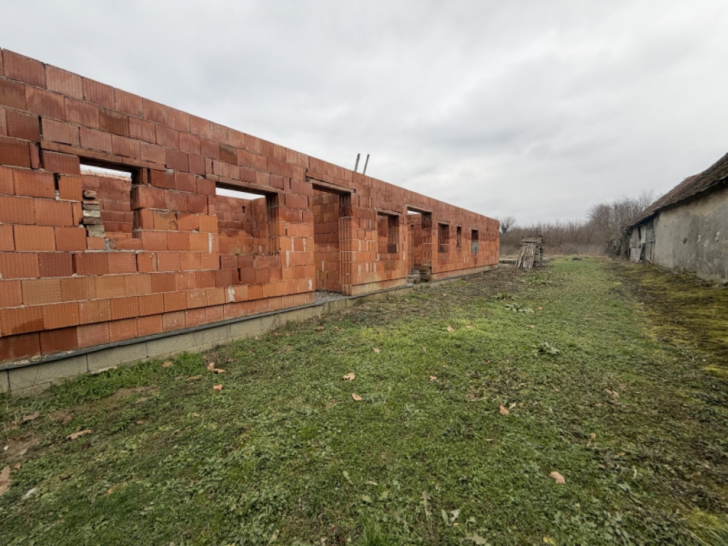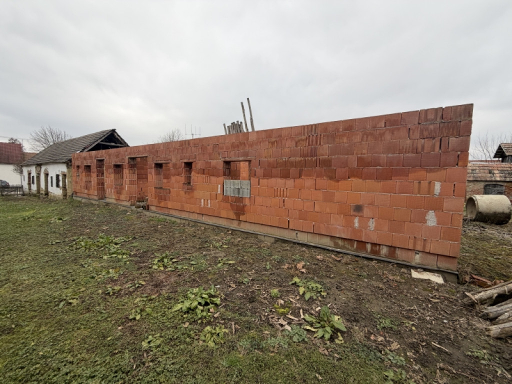 A telken található egy 71 m²-es új házrész, ahol a falak már állnak, így az építkezés jelentős része már elkészült.