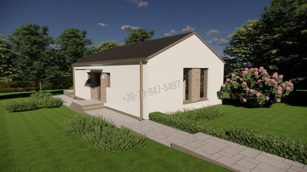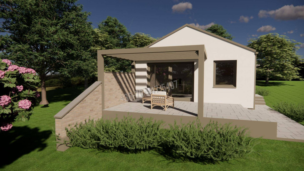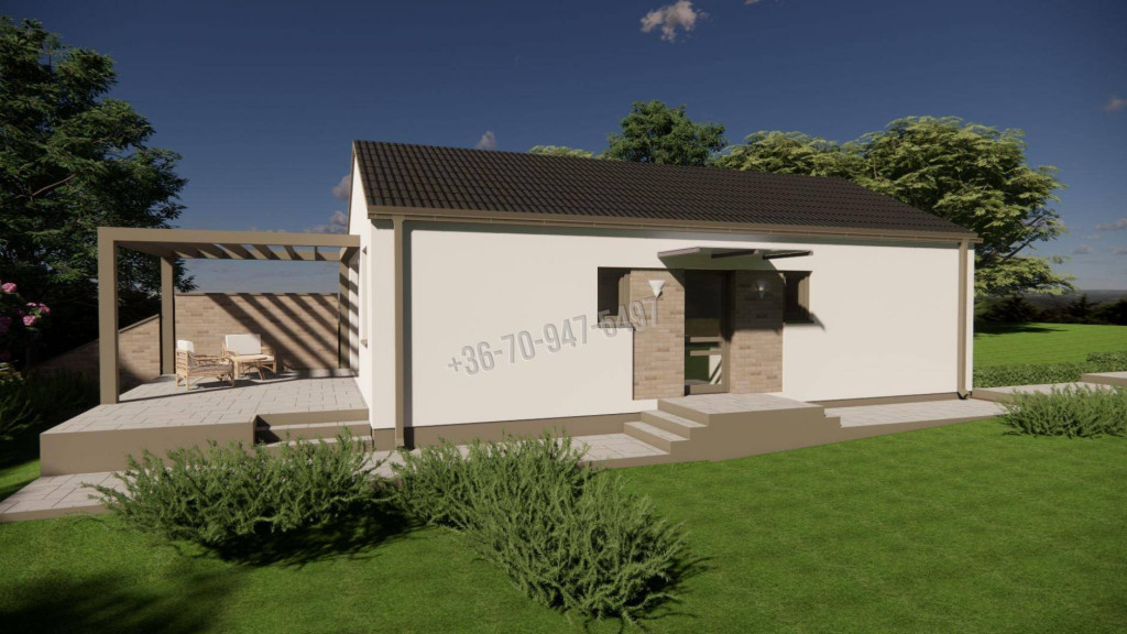 Dunaalmás. 870 négyzetméteres telek. Új építésű. Könnyűszerkezetes. Családi ház.
