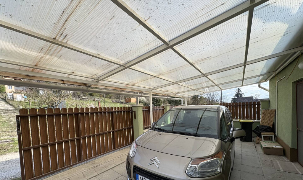 Az ingatlanhoz tartozik egy polikarbonáttal fedett terasz. Az udvarban fedett kocsibeálló található tolókapuval, valamint a hátsókertben gyümölcsfák kaptak helyet.