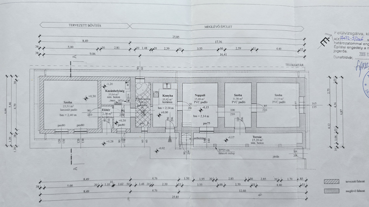 Szondi utcában, teljesen felújított és kibővített családi ház eladó! Az ingatlan teljes körű felújítási munkálatai 2022 ben fejeződtek be. Amelyek során új tető, új villamos hálózat, új vízvezeték rendszer, teljes külső-belső festés és burkolás került kivitelezésre. A ház hátsó részéhez 2006 ban egy nettó 40 négyzetméter alapterületű 38 as Porotherm téglából épült lakórész lett hozzáépítve, amely az épület első részéből és az udvar felől is megközelíthető. A teljes födémen 20 cm-es kőzetgyapot szigetelés van, tükörfóliával. Az épület Terranova speciális légáteresztő homlokzati vakolattal rendelkezik, a vizesedés megakadályozása érdekében. A réggebben épült vályog téglás rész falai is szárazak, repedés mentesek. Az ingatlan statikailag is jó állapotban van. Az épület fűtését cirkó gáz és egy vegyestüzelésű kazán biztosítja, lapradiátorokon keresztül. Az inagatlanhoz tartozik egy szintén jó állapotú 20 négyzetméteres gazdasági épület és egy 25 négyzetméter alapterületű könnyűszerkezetes garázs. Az udvar karbantartott, az első részében füvesített és dísznövényekkel ültetett, a telek végében akácfák vannak.