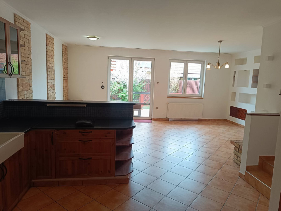 Az ingatlan egyik nagy előnye a jól átgondolt elrendezés és az élhető terek. A tágas, amerikai konyhás nappali a családi élet központja, amely közvetlen kapcsolatban áll a terasszal és a hangulatos, zárt kerttel – ideális hely pihenésre, baráti összejövetelekhez vagy akár a gyerekek biztonságos játékához.