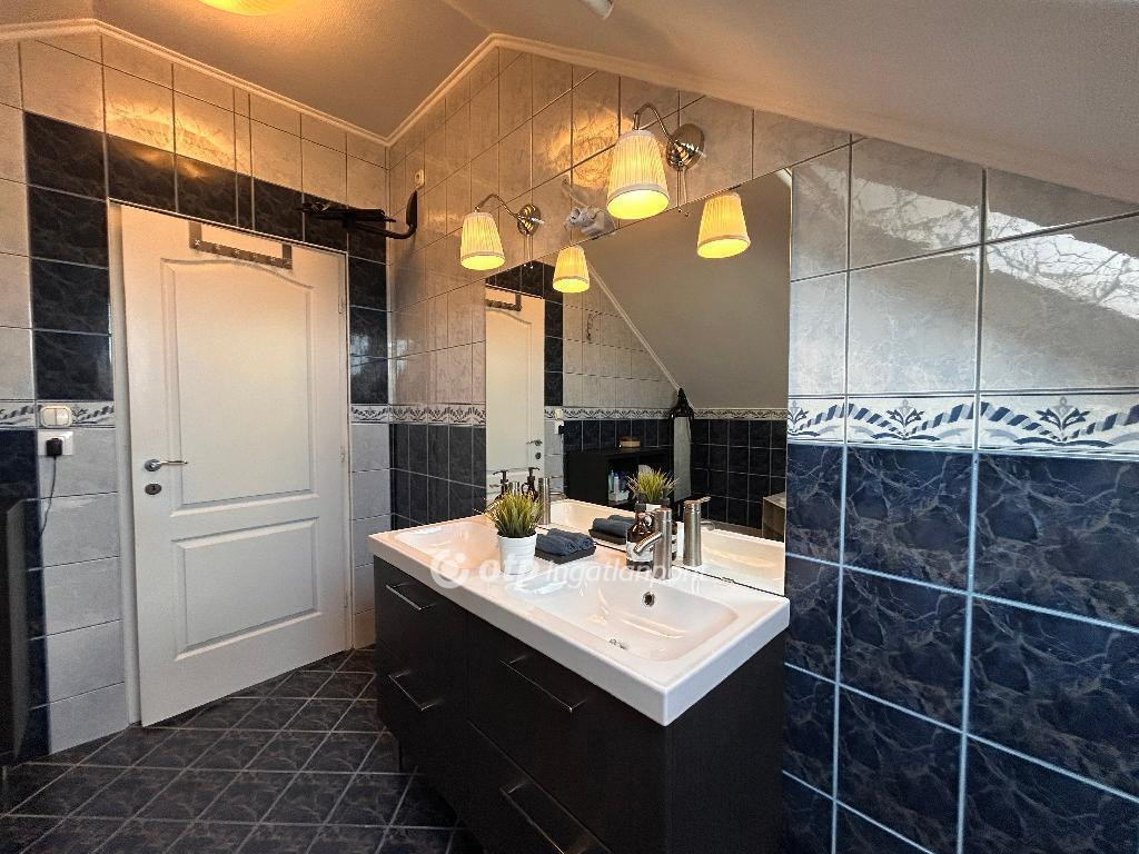 Három generációnak is kiváló minőségű lakhatást biztosító 2 szintes családi ház, aszfaltozott utcában, Fő úthoz közel. Az épületben két lakószinten 4 hálószoba, 2 nagyméretű nappali, 2 gépesített konyha, 3 fürdőszoba , 1 szeparált toalett, található. Az alsó szinten 30 m2-en mosókonyha, tároló helység lett kialakítva. A parkosított kertben épített 6x4 méteres fűthető medence, vízforgatóval . Az öntözéshez fúrt kút található. A nagyméretű emeleti szép kilátás nyílik a lejjebb fekvő szomszédos házakra. A ház teljességgel alkalmas egy nagy család minden igényének kiszolgálására, irodaközpontnak, vagy akár egy kisvállalkozás központjának. Az ingatlan azonnal költözhető! Ha, a budapesti belvárostól 25 perc autóútra, egy dinamikus lüktetésű, modern kisvárosban, a buja természetbe ágyazott lakhelyet keres, akkor jó esélye van rá hogy itt megtalálja. Dunaharaszti alsó falujában, remek elhelyezkedéssel eladó tégla családiház. Az épület tervezésénél/építésénél nagy hangsúlyt fordítottak, az átgondolt kényelmes és világos terek kialakítására. A 2 szintes épület alsó szintjén kapott helyett gépészeti helyiség, wc, mosókonyha, tárolók, mely szint szuterén így ablakokkal ellátott. A két külön bejáratú lakás, saját mérő órákkal ellátott. ( víz, villany, gáz) A középső szinten, nappali - étkező - konyha, előszoba, az emeleten 3 hálószoba, gardrobe, fürdőszoba, wc A földszinten hatalmas D-Ny. tájolású terasz található, mely nappali illetve hálószoba kapcsolatos, kilátással. Az épület a 1996-ban évek elején épült, 2000 környéken érte el a mai készültség fokot. Szerkezetileg jó állapotú, a jelenlegi állapotban is azonnal költözhető. Enyhén lejtős, füvesített, növényekkel beültetett, épített medencével ellátott, barátságos telek. Padlófűtés, redőnyök, homlokzati szigetelés, riasztó, fúrt kút, kazán, beépített konyha és egyéb bútorok a vételárban. Tehermentes, azonnal birtokba vehető ingatlan. A közelben buszmegálló, az új vonat állomás, kis bolt, SPAR, edzőtermek, pékség, általános iskola található. Hév állomás 25 perc kényelmes sétányira. Szívből ajánlom minden olyan érdeklődőnek, akinek fontos a minőség és kényelem, a jó közlekedés és valamint a központhoz való pár perc alatti közelség, mégis megnyugtató szigetként funkcionáló meghitt családi otthon!