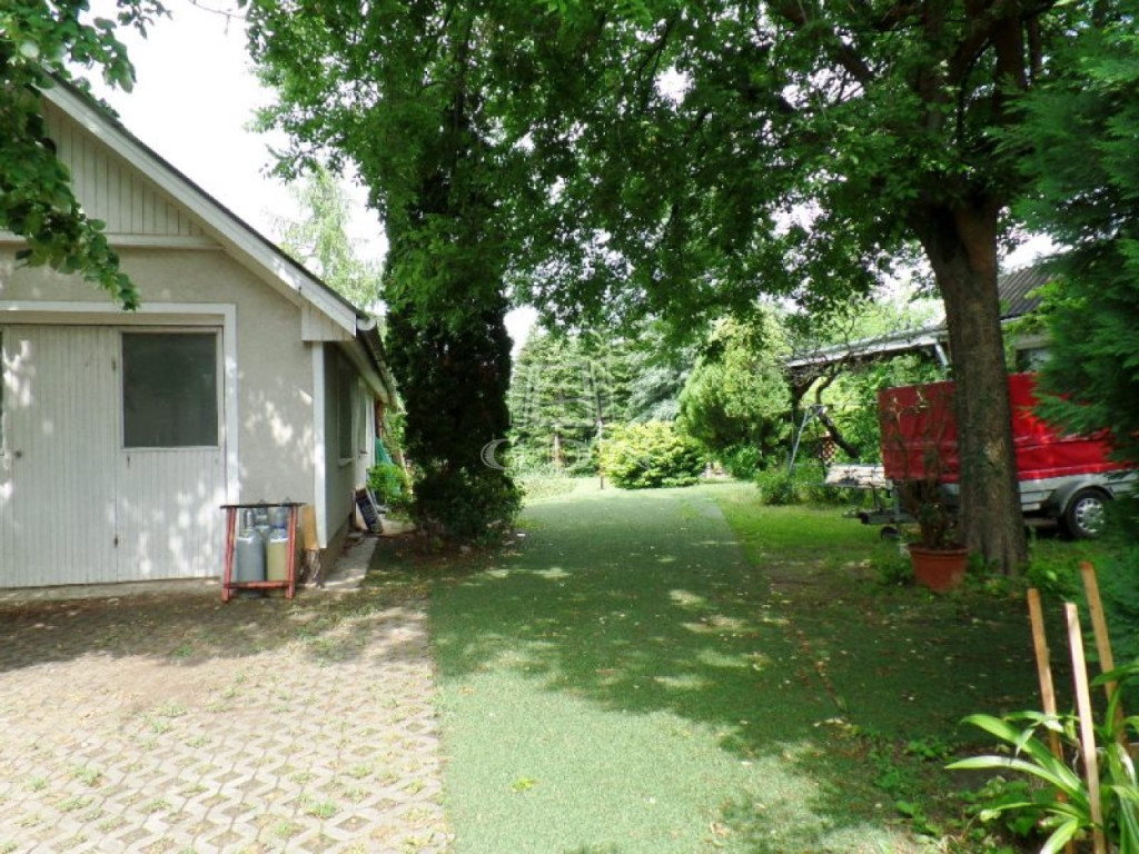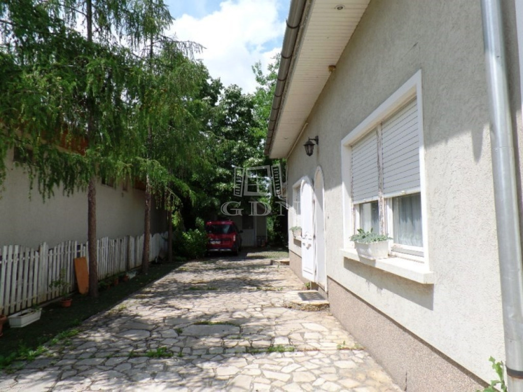 Az öntözőrendszerrel kiépített, parkosított és terméskővel burkolt udvar több autó parkolására alkalmas. A rendezett telken téglából épült 20 m2 garázs és 16 m2 fedett terasz is található.