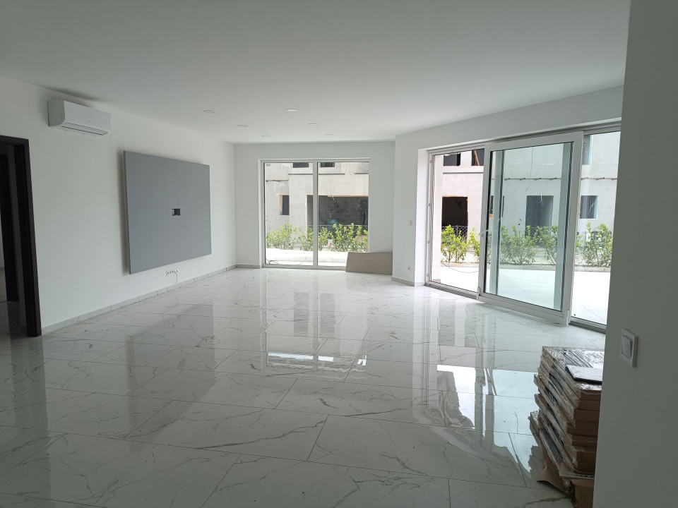 A szobák parkettával, a nappali és a többi helyiség márvány hatású greslapokkal burkoltak ! A burkolatok alatt 10 cm vastagságban lépésálló polisztirol szigetelés !.