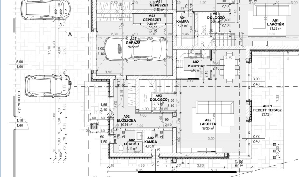 A terven még nem látható, de az autóbeállók fölé 1-1 szoba kialakításra kerül.