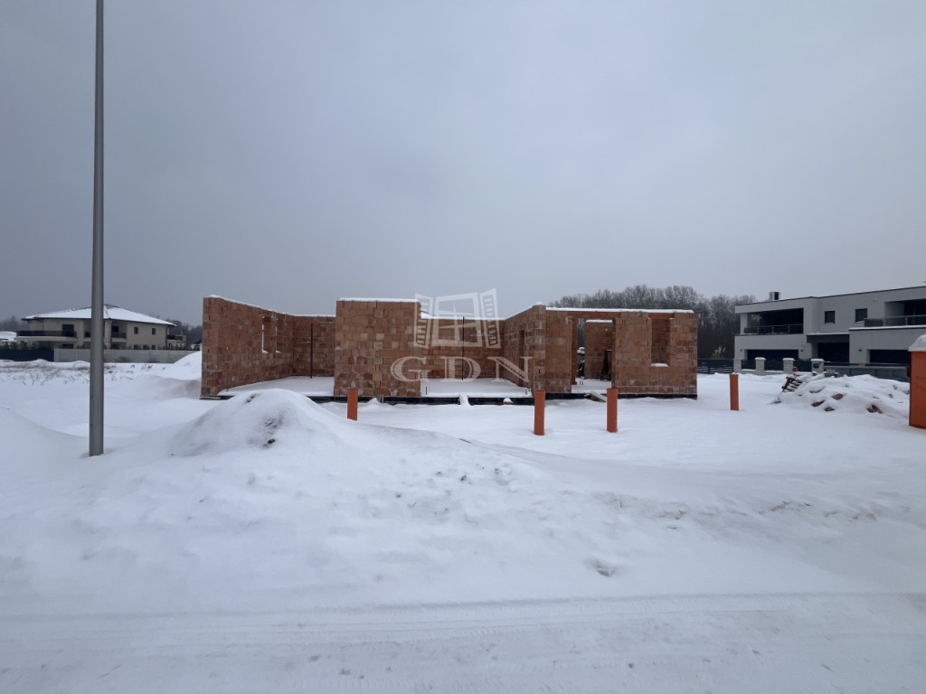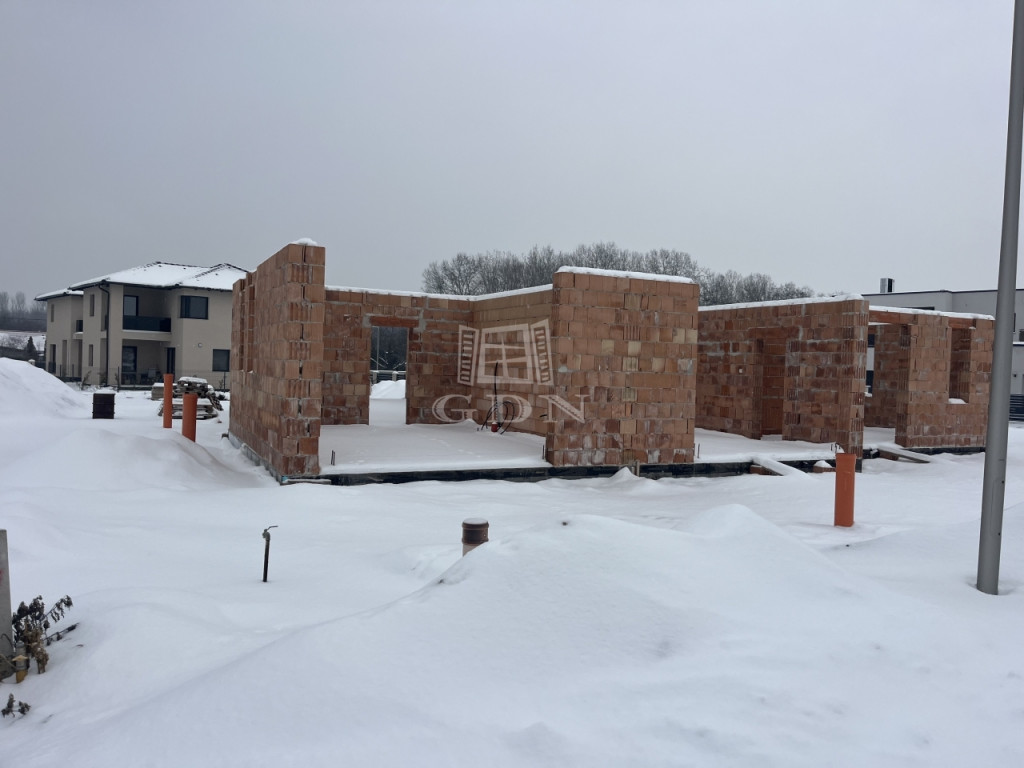 Modern, földszint + emeletes ikerház Porotherm N+F falazattal, monolit vasbeton födémmel és sávalapozással épül.