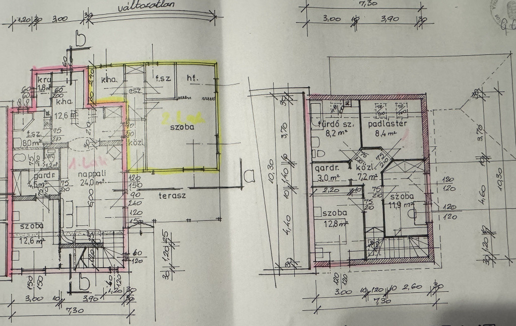 Az emeleten található egy központi klíma rendszer, légtechnikával.