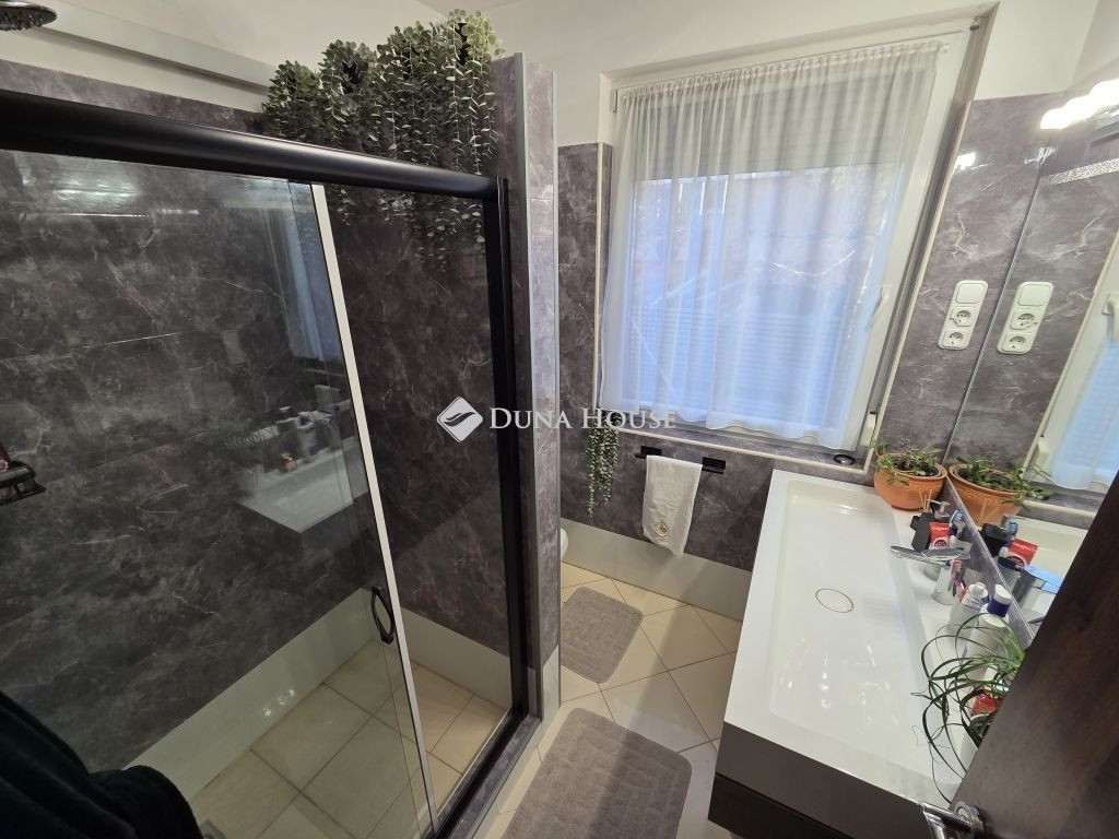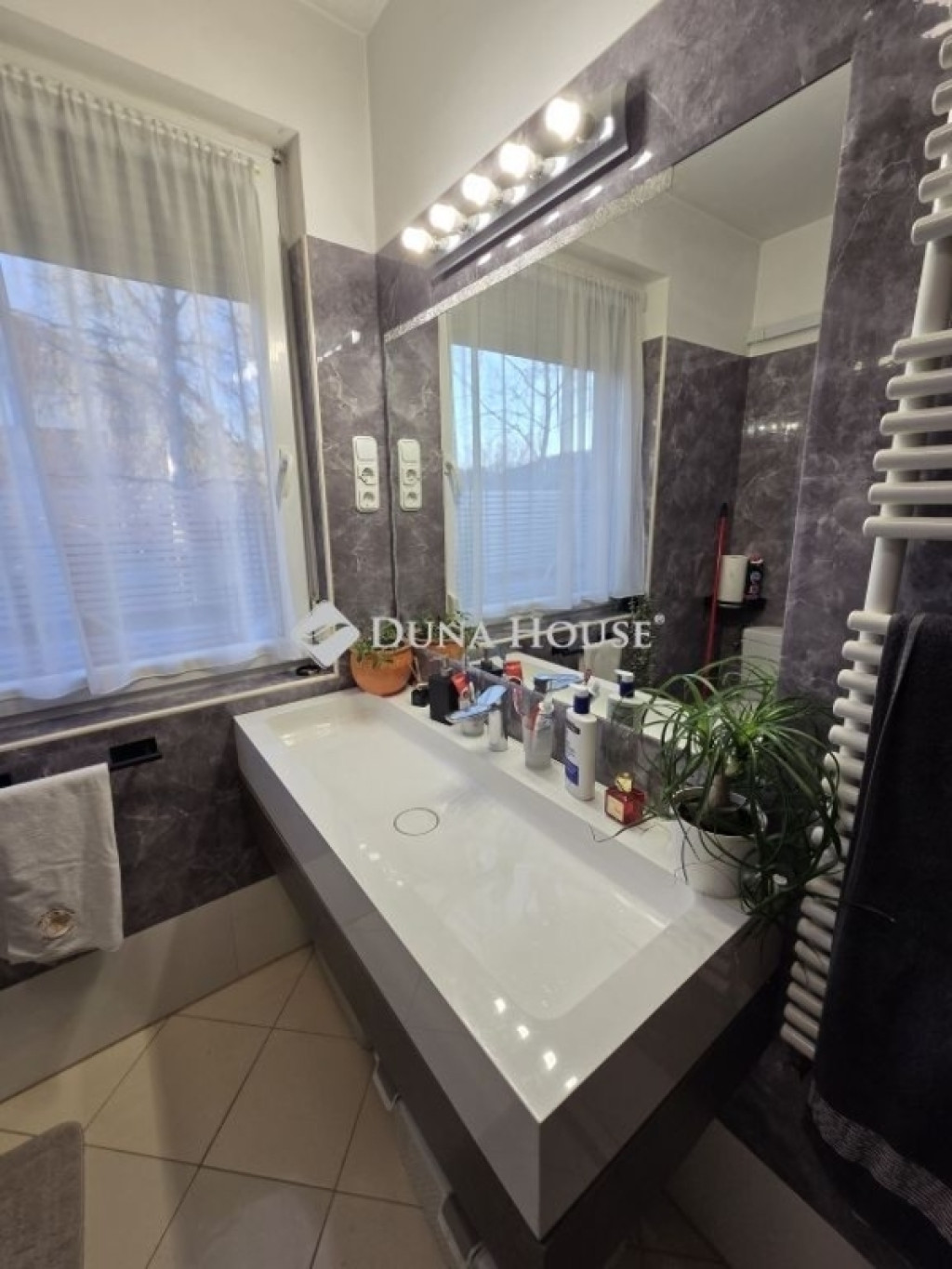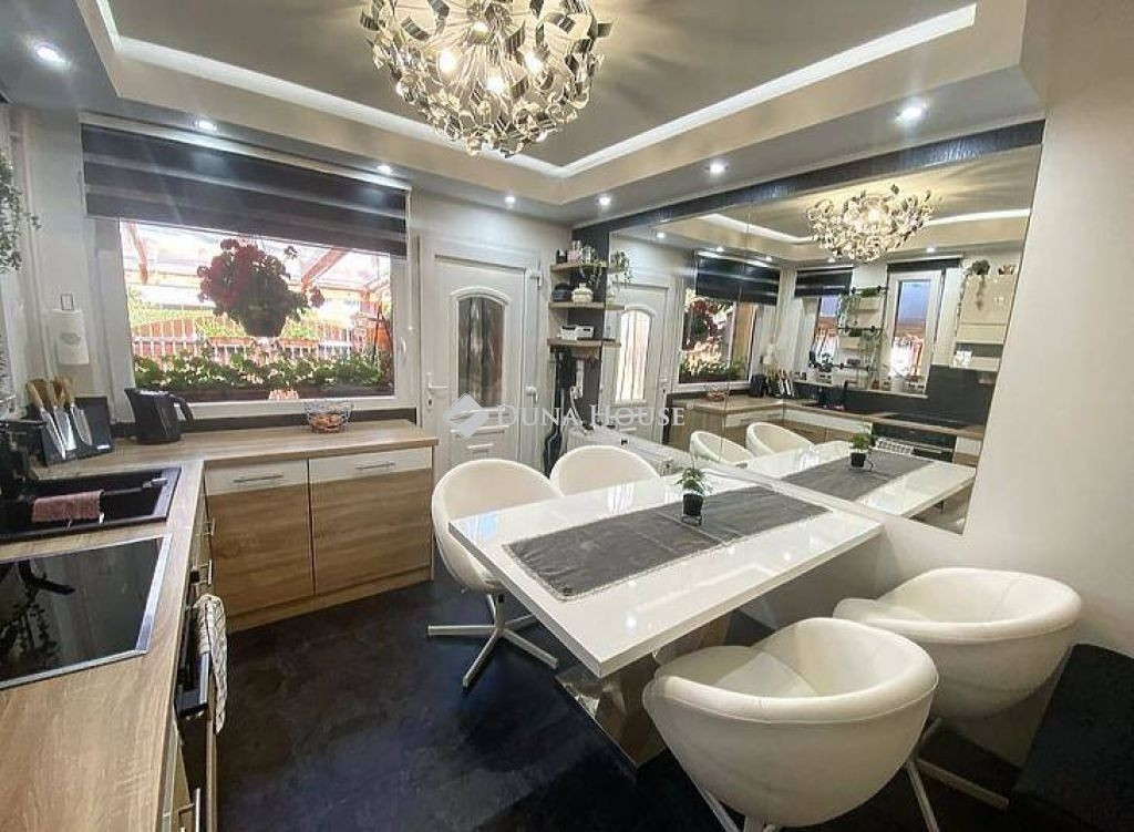A ház 380 m2-es telken, jelenleg 2 lakrészből áll, összesen bruttó 165 m2, 6 szobával és egy 17 m2-es fedett terasszal rendelkezik. Dupla komfortos, szép világos, kellemes, otthonos, jó terekkel rendelkező, igény szerint akár tovább alakítható.