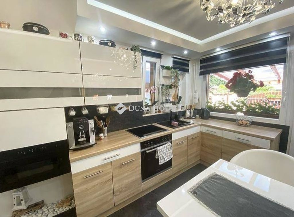 Dunakeszin a Duna - parthoz és a központhoz is közel, mégis csendes, átmenő forgalomtól mentes utcában, 2 generációs kitűnő állapotú, modern, stílusos, sok extrával felszerelt ikerház fél eladó!