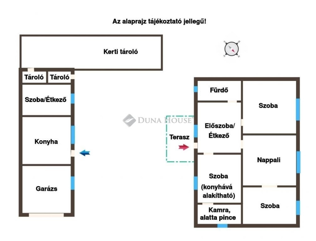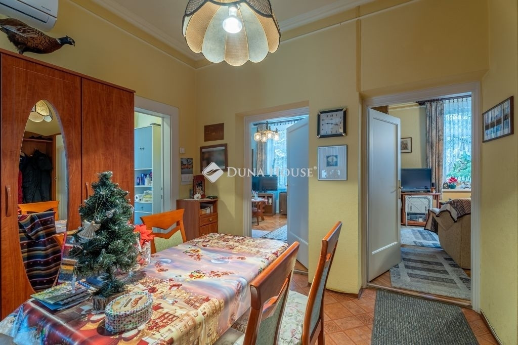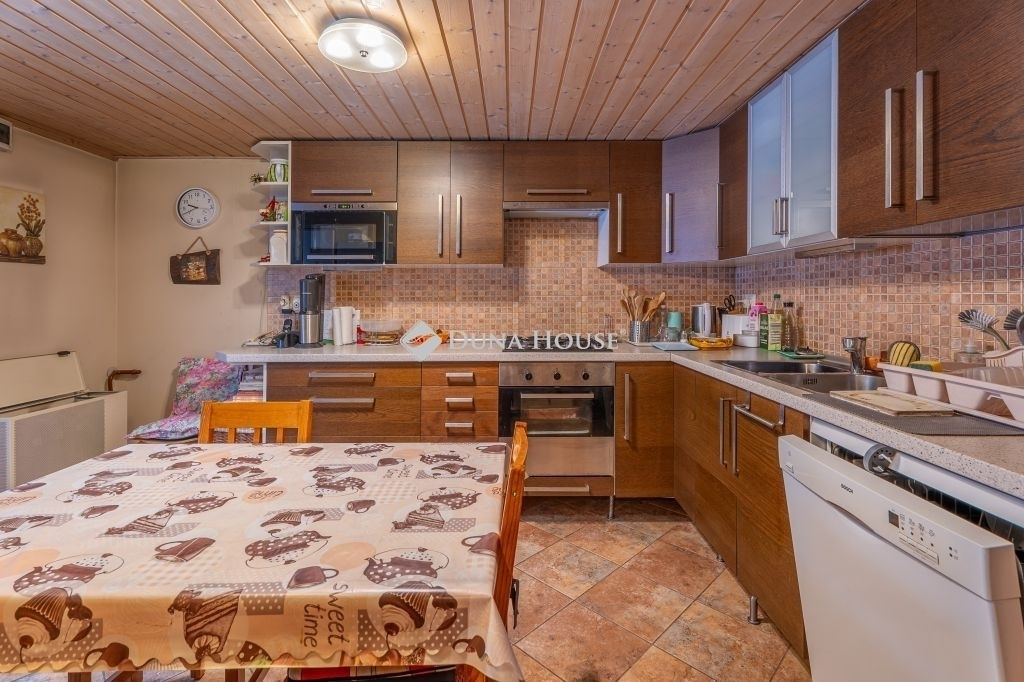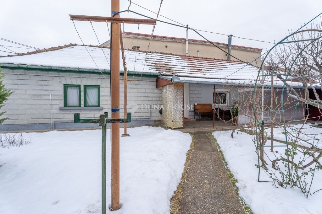 Sokoldalúan hasznosítható ingatlan Dunakeszi csendes részén, két épülettel, saroktelken.Dunakeszi csendes részén, 1960-as években épült, 720 m2-es saroktelken kínálok megvételre egy sokoldalúan hasznosítható ingatlant, amely ideális választás lehet nagycsaládosoknak, kétgenerációs együttélésre vagy hosszabb távú befektetésnek.A telken két különálló épület található.A főépület tágas, jól tagolt elrendezésű, 4 szobával, külön tárolóval, valamint egy 5,3 m2-es, száraz pincével rendelkezik. Kapcsolódik hozzá egy nagyobb fedett terasz, amely ideális családi összejövetelekhez. Fa födémmel rendelkezik az épület, igény esetén beépíthető tetőtérrel, kifogástalan állapotú tetővel. Az épület homlokzata 5 cm szigetelést kapott, a nyílászárók mindenhol cserélve lettek, több helyiségben redőnnyel és szúnyoghálóval felszerelve. A melléképületben konyha, szoba, garázs és külön tároló kapott helyet. A közművek könnyen bővíthetők, így fürdőszoba is egyszerűen kialakítható, aminek köszönhetően az ingatlan akár két önálló lakóegységként is funkcionálhat.A telken több, tárolásra alkalmas melléképítmény található, köztük egy fa szerkezetes kisház. A kert öntözése gyűrűs kútról, nagy nyomású szivattyúval megoldott. A kényelmet elektromos kapu és elektromos garázsajtó biztosítja.Mindkét épületben gázkonvektoros fűtés és klímaberendezés található. Műszaki adottságai stabil alapot biztosítanak ahhoz, hogy egy átgondolt korszerűsítéssel (pl. fűtéskorszerűsítéssel, villamossági hálózat cseréjével vagy belső elrendezés finomhangolásával) kifejezetten igényes, mai elvárásoknak megfelelő élettér jöjjön létre.Az ingatlan tehermentes, rendezett jogi háttérrel, első tulajdonosoktól kerül értékesítésre.A környék rendezett, nyugodt, ugyanakkor a mindennapi élethez szükséges szolgáltatások (bevásárlási lehetőségek, intézmények, közlekedés) rövid időn belül elérhetők, így a lokáció egyszerre praktikus és élhető.