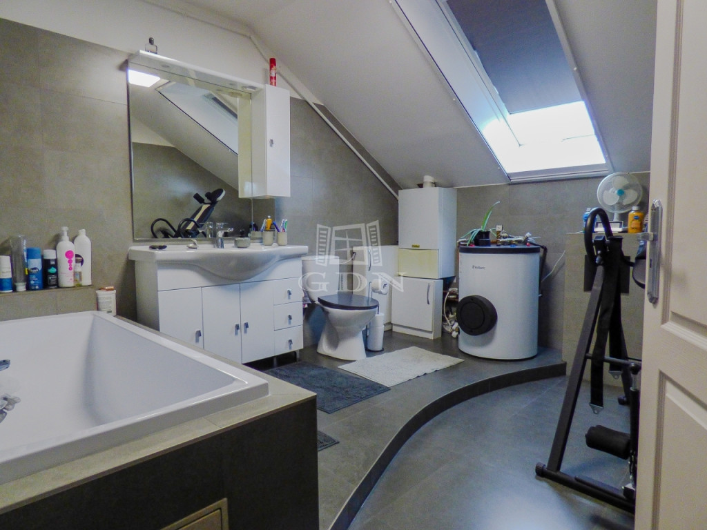 Dunakeszin, Alag város részen, kertvárosi környezetben, 490 nm-es sarok telken lévő, 2002-ben és 2007-ben épült, teljeskörűen felújított (új tető), vasbeton födémes (a kis lakrész fafödémes), két szintes, szigetelt (8 cm dryvit), bruttó 170 nm-es, 6+1 fél szobás, Keleti fekvésű, 2 GENERÁCIÓS (külön albetétes), gáz cirkó fűtéses (radiátoros hőleadással), központi klímás, műanyag thermo nyílászárós (redőnnyel, rovarhálóval), vízlágyítóval, riasztóval, kamerával felszerelt, rugalmasan birtokba vehető, családi ház eladó.