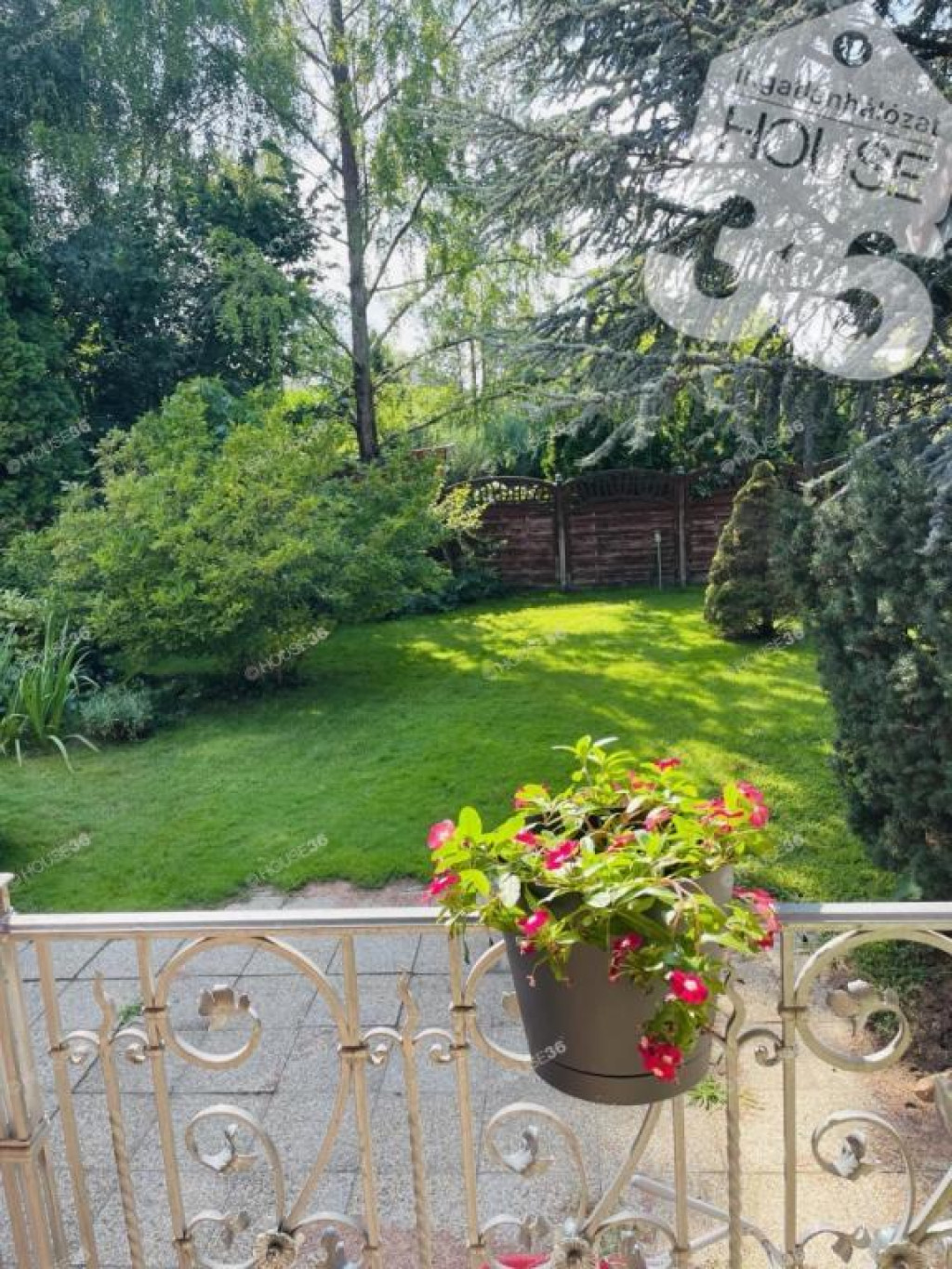 Nagy ~ 26 m2" terasz mely részben fedett részben motoros árnyékolóval van ellátva. Fedett ~ 22 m2 terasz mely BBQ konyhának kialakítható. Díszhalastó, automata öntözőrendszer, fúrt kút.