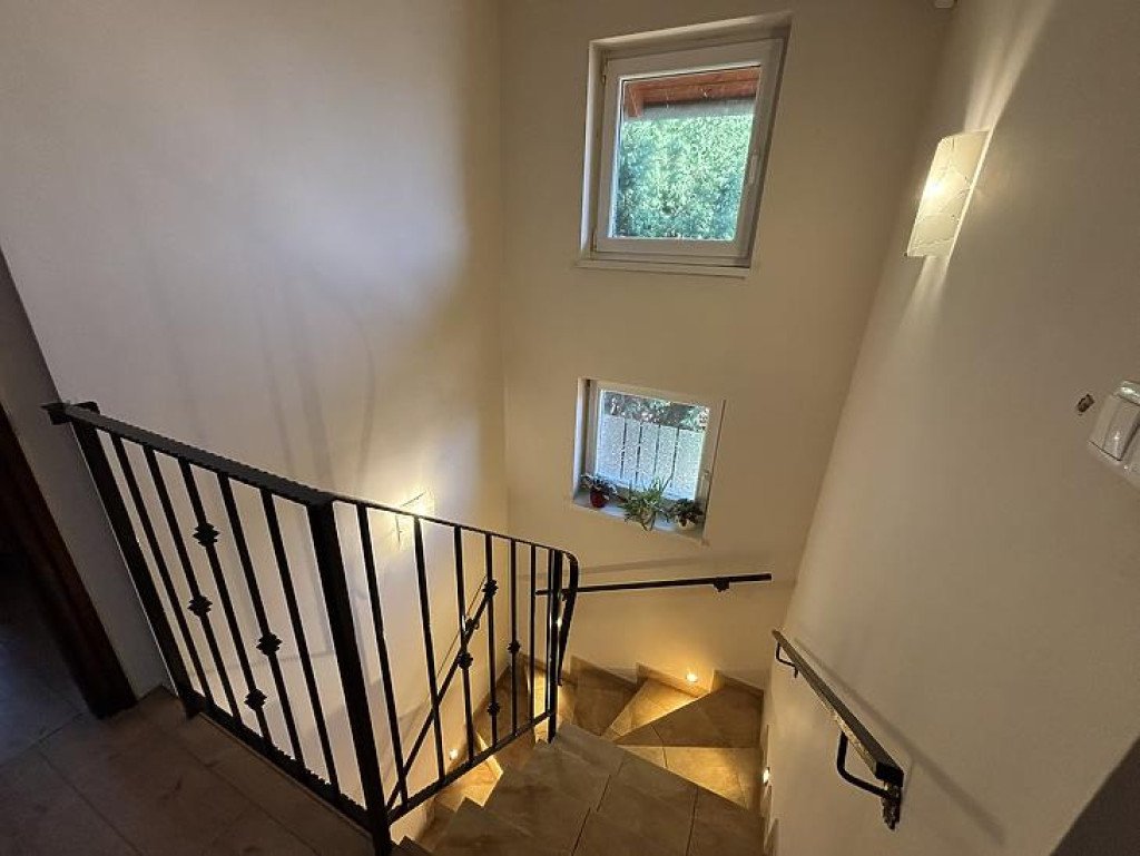 A fűtést gázcirkó biztosítja: a földszinten padlófűtéssel, az emeleten radiátoros hőleadással. A nyári melegben Daikin hűtő-fűtő klíma gondoskodik a kellemes hőmérsékletről.
