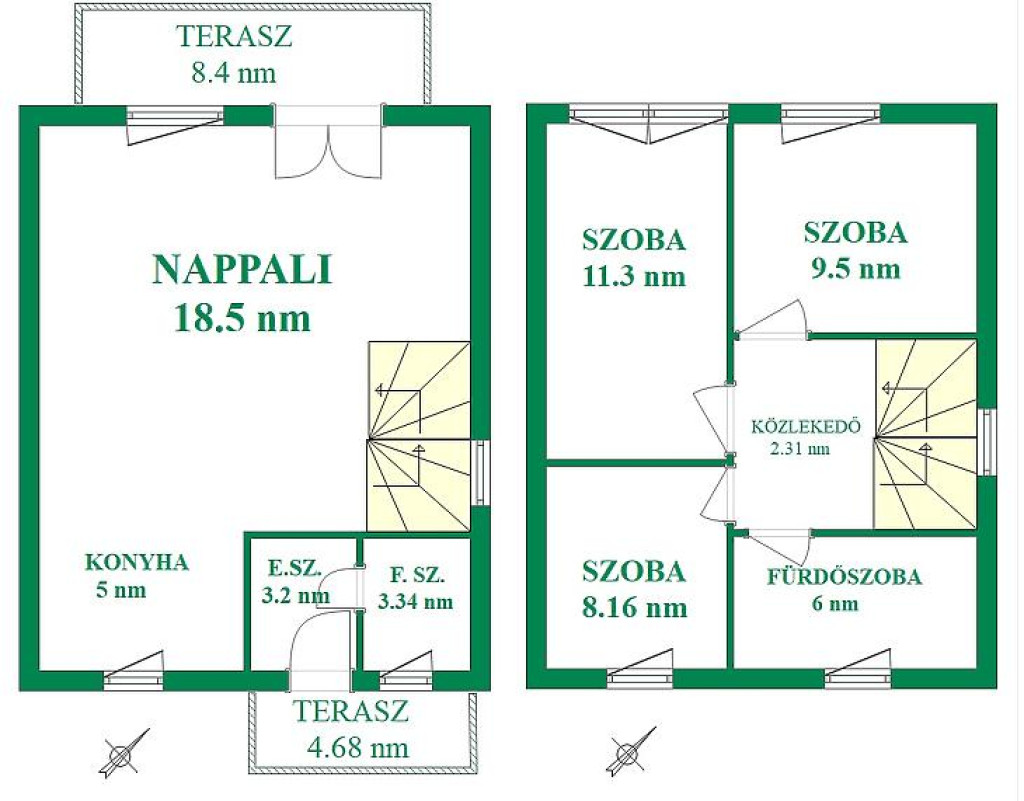Az emeleten egy kényelmes méretű fürdőszoba és három praktikus elrendezésű szoba kapott helyet.