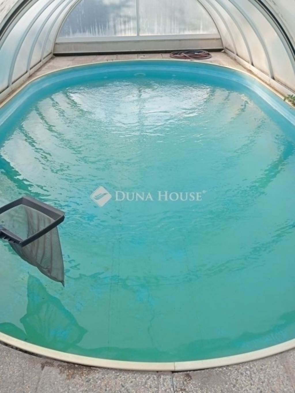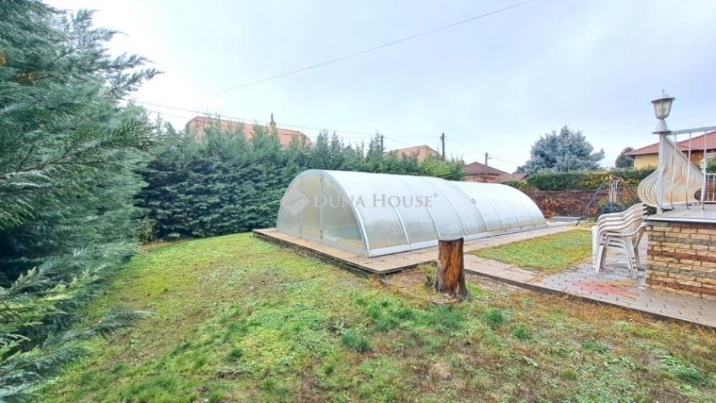 Mediterrán kert: aciprusokkal körbevett kert teljesen privát, nyáron pedig igazi élményközpont, medence a forró napokra, játszótér a gyerekeknek, részben fedett kutyakennel, kerti tároló, fúrt kút.