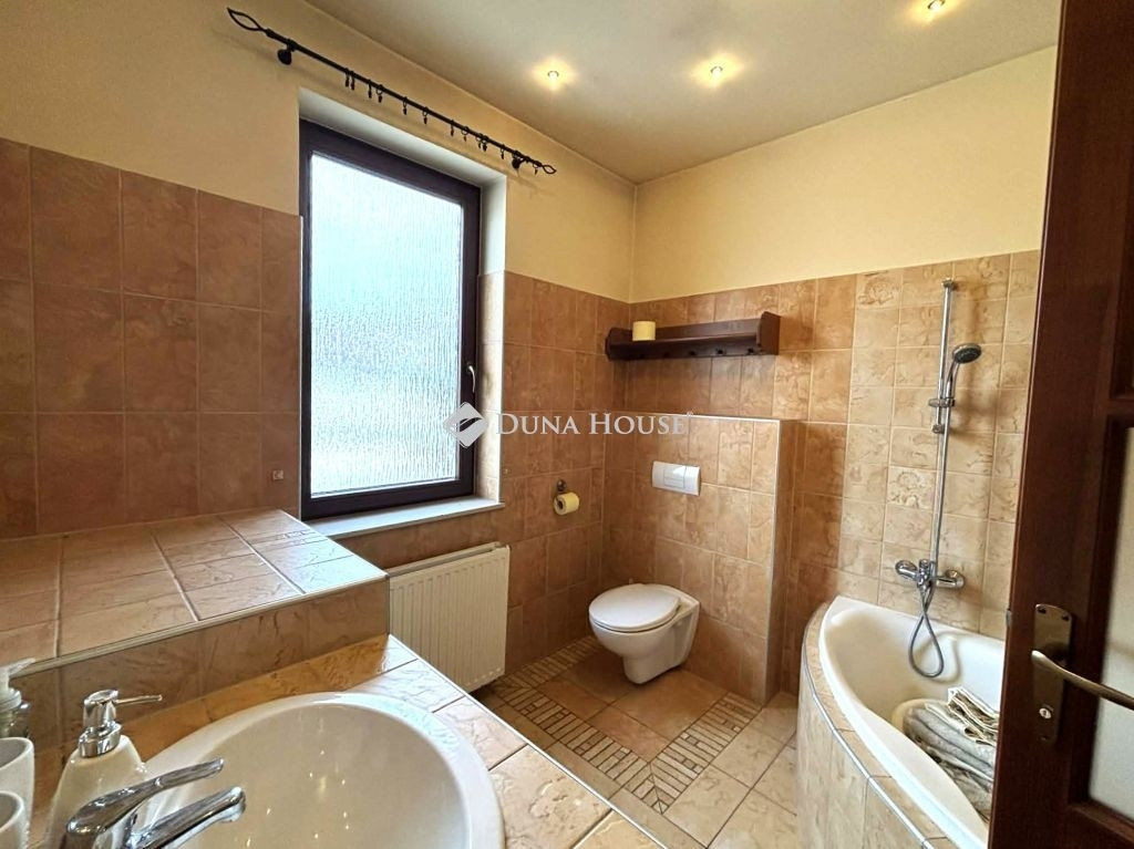 Minőségi kivitelezés, ízléses dizájn jellemzi a tágas terekkel ellátott ingatlant. Az alsó szinten előszoba- ahonnan a pincelejáró nyílik, valamint egy vendég WC illetve a nappali, konyha, étkező 55 négyzetméteren helyezkedik el, ahonnan nyílik 3 szoba, melyből egy jelenleg gardróbként funkcionál, valamint egy fürdőszoba. A kényelmes, prémium lépcsőn jutunk fel az emeletre, ahol egy társalgó valamint egy szülői háló- gardrób- fürdőszoba(nincs befejezve) kapott helyet. Praktikusan a szülői hálóhoz kapcsolódik egy 7 négyzetméteres erkély is.