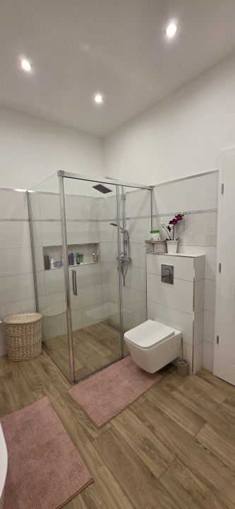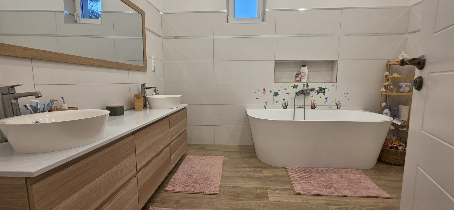 -elegáns fürdőszoba Wellis káddal és különálló zuhanykabinnal