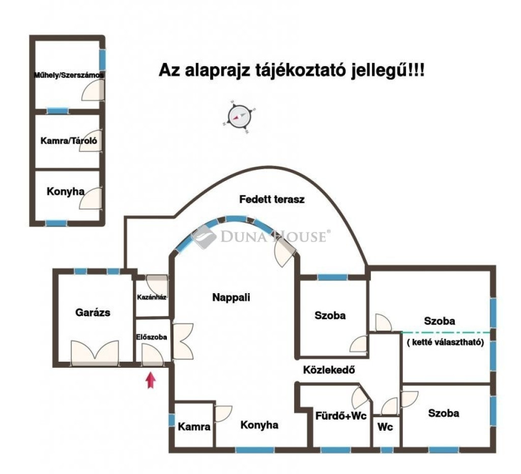- melléképület, melyben fűtött konyha, kamra/tároló és műhely/szerszámos kapott helyet
