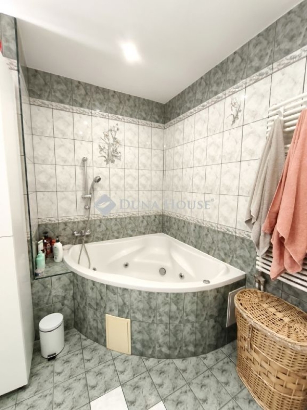 Az otthon világos, tágas, polgári stílusú, jól átgondolt terekkel. A kőburkolatú helyiségekben padlófűtés, míg a laminált padlóval burkolt hálószobákban radiátoros fűtés biztosítja a komfortot. A fürdőszoba sarokkáddal és külön zuhanyzóval, bidével és WC-vel felszerelt, emellett egy külön vendég WC is rendelkezésre áll. A fürdőszobában a padlófűtés mellett törölközőszárítós radiátor gondoskodik a kellemes hőérzetről.