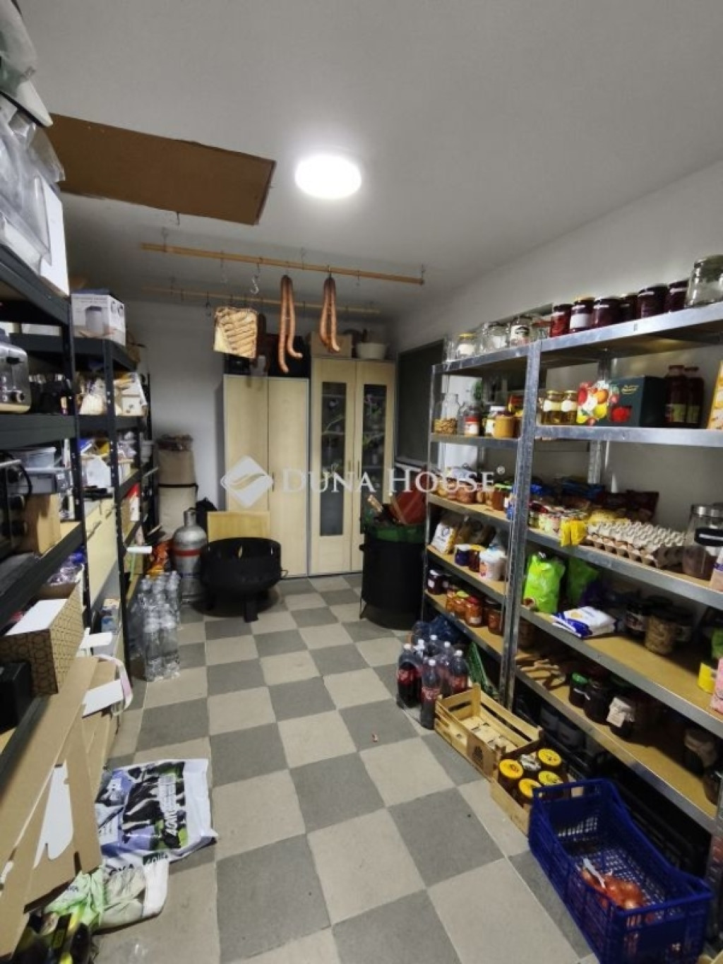 A kertben található egy különálló, többfunkciós melléképület, amelyben egy fűtött konyha, egy kamra jellegű tágas tároló, valamint egy kényelmes méretű kerti szerszámos / műhely került kialakításra, így a praktikus funkciók is teljes körűen adottak.
