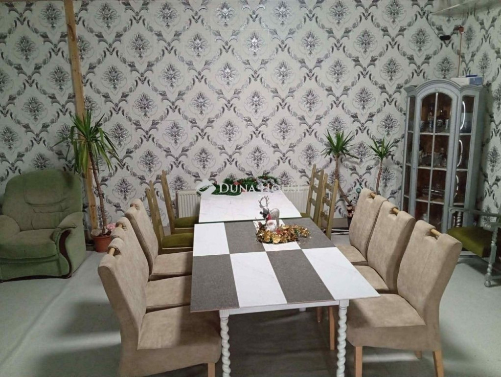 Pentelei ház Dunaújvárosban eladóAz ingatlan csendes utcában fekszik, távol a forgalom zajától, ideális családi otthon. Masszív, 38 cm vastag falazat, időtálló beton szerkezettel a régebbi évek minőségi építkezése, 135 m² hasznos alapterülettel, tágas és világos belső terek, kiemelkedő 300 cm-es belmagasság, amely levegőssé és még otthonosabbá teszi a teret. A meleget központi fűtés adja vegyes tüzelésű kazánról. A ház felújítása folyamatos, új hőszigetelt ablakok és új bejárati ajtó, egy éve tetőcsere 30 cm-es tetőszigetelés felvitelével. Az ingatlan szépítése még befejezésre vár, melyet saját igényére az új tulajdonos fogja befejezni. Amerikai konyhás nappali, 3 külön nyíló hálószoba, nagy fürdőszobával, kazánházzal. Bővíthető beépíthető felsőszint, két szoba és fürdő kialakítható, vezetékek a csatlakozáshoz fenn vannak a tetőtérben.Az udvar ideális családi pihenésre, gyerekeknek játszótérnek.Két utcányira a szabad strand és szabadidő park, a tó és horgászati lehetőség.A központ és boltok gépkocsival néhány perc alatt elérhető. A közelben mindent megtalál, ami a napi élethez nélkülözhetetlen.Amennyiben az ingatlan felkeltette az érdeklődését, kérem, vegye fel velem a kapcsolatot.VEVÓINKNEK MINDEN SZOLGÁLTATÁS DÍJMENTES!