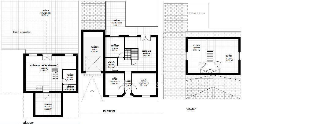 Az elrendezés kiváló: két egész szoba, négy félszoba, két konyha, két fürdőszoba (egyik zuhanyzós, másik fürdőkádas), valamint két, részben fedett terasz is helyet kapott. A ház első része könnyűszerkezetes, 15 cm szigeteléssel ellátva.