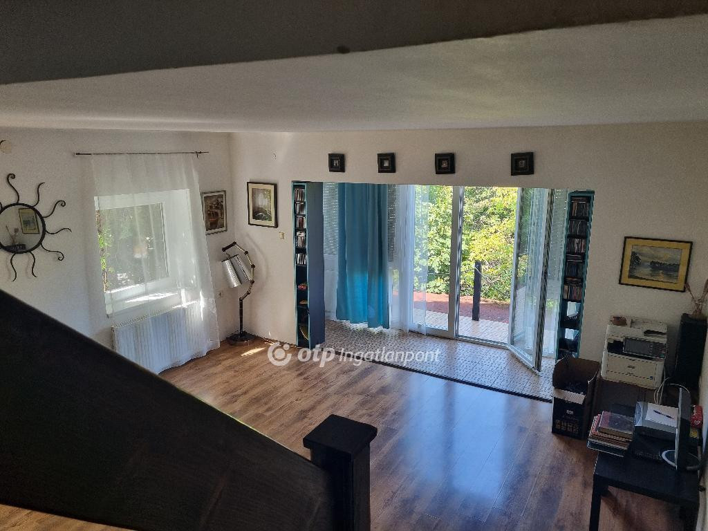 A 130 négyzetméteres, eltolt szintekkel rendelkező házban 3 szobát + 1 félszobát találunk, amelynek ablakai a DUNÁRA PANORÁMÁSOK. Nagyméretű étkezős konyhája fedett terasszal kapcsolódik a zöld kerthez, amelynek buja növényzete kellemes közérzetet biztosít a legmelegebb napokon is.