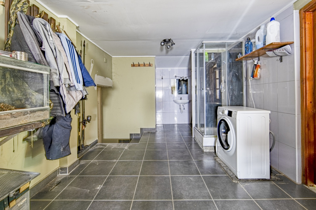 Az épülethez tartozik egy 60 m²-es lakrész is, amelyben amerikai konyhás nappali, zuhanyzó és WC található.