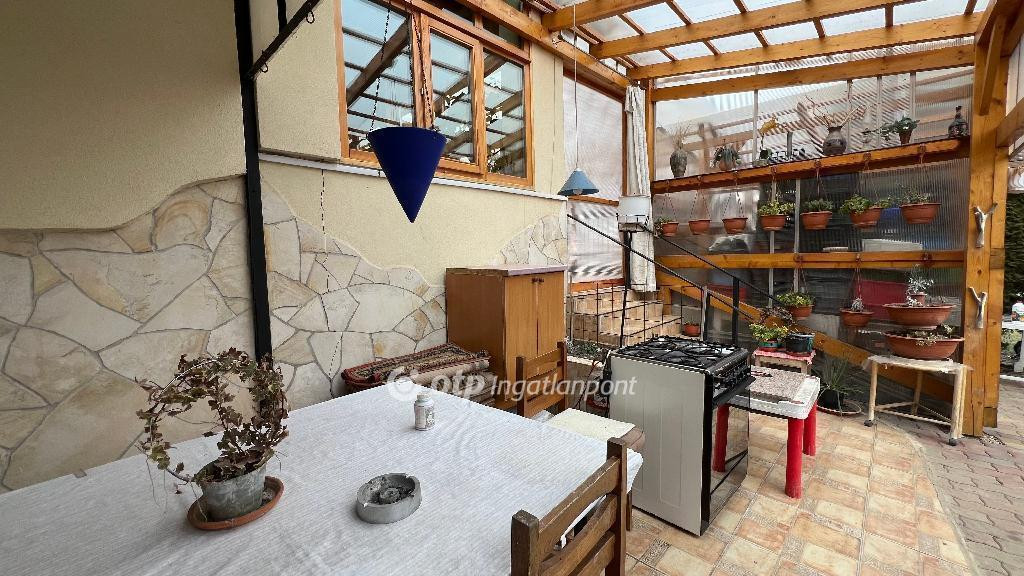 A házhoz mellett egy kétállásos, hidegburkolattal ellátott garázs és egy 35 m2-es, fedett, zárt terasz található, amely egész évben kellemes helyszínt biztosít a kikapcsolódásra.