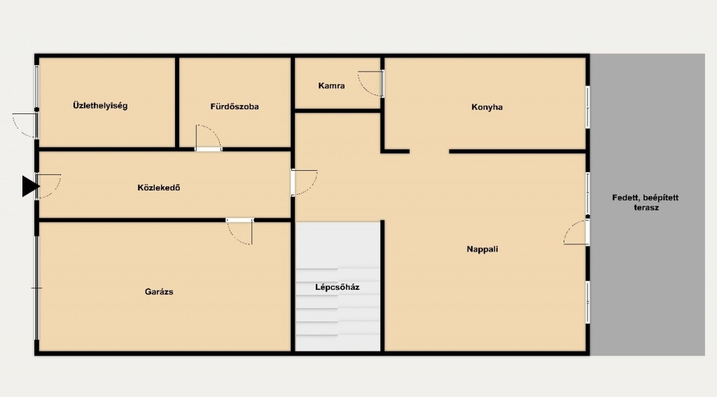 - nappaliból nyíló tágas, téliesíthető, fedett terasz