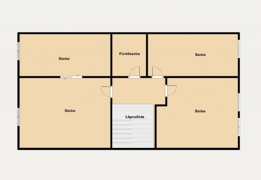 - konyha - étkező - nappali, 4 szoba, előszoba, konyhából nyíló kamra, 2 db fürdőszoba