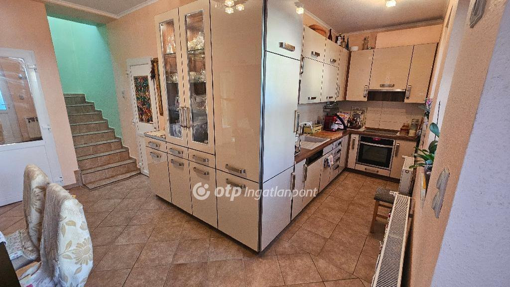 Heves megye, Eger, Gerinc utca, 141 nm-es ikerházrész eladó. A 2002-ben, téglából épült, belső kétszintes ingatlan alsó szintjén tágas nappali, konyha, étkező, zuhanyzós fürdőszoba, kamra, előszoba, garázs és a teraszon keresztül megközelíthető kis udvar található. Az emeleten három hálószobát, gardróbot, fürdőszobát és közlekedőt alakítottak ki. A fűtésről cirkó gázkazán gondoskodik, radiátorok segítségével. Ablakai az alsó szinten műanyagok, a nappaliban redőnnyel szereltek. Az emeleten fából készült, Velux tetőtéri nyílászárókat építettek be, amiket sötétítővel láttak el. A komfortérzetet két, 2023-ban felszerelt klíma növeli. A vezetékes víz vízlágyító/szűrő berendezésen keresztül érkezik az ingatlanba. A tulajdoni lapon lakásként nyilvántartott ikerházrész jó állapotú, tisztasági festést, illetve egyéni igényeknek megfelelő átalakítást követően költözhető. Kialakításának, méretének és elhelyezkedésének köszönhetően ideális otthona lehet akár többgyermekes családnak is. Felkeltették érdeklődését a leírtak? Egyeztessünk egy személyes megtekintés lehetőségéről! Ingatlanirodánk ügyvédi háttérrel, babaváró hitel, CSOK plusz, valamint kamatkedvezményes hitel ügyintézésével támogatja ügyfelei ingatlanvásárlását!