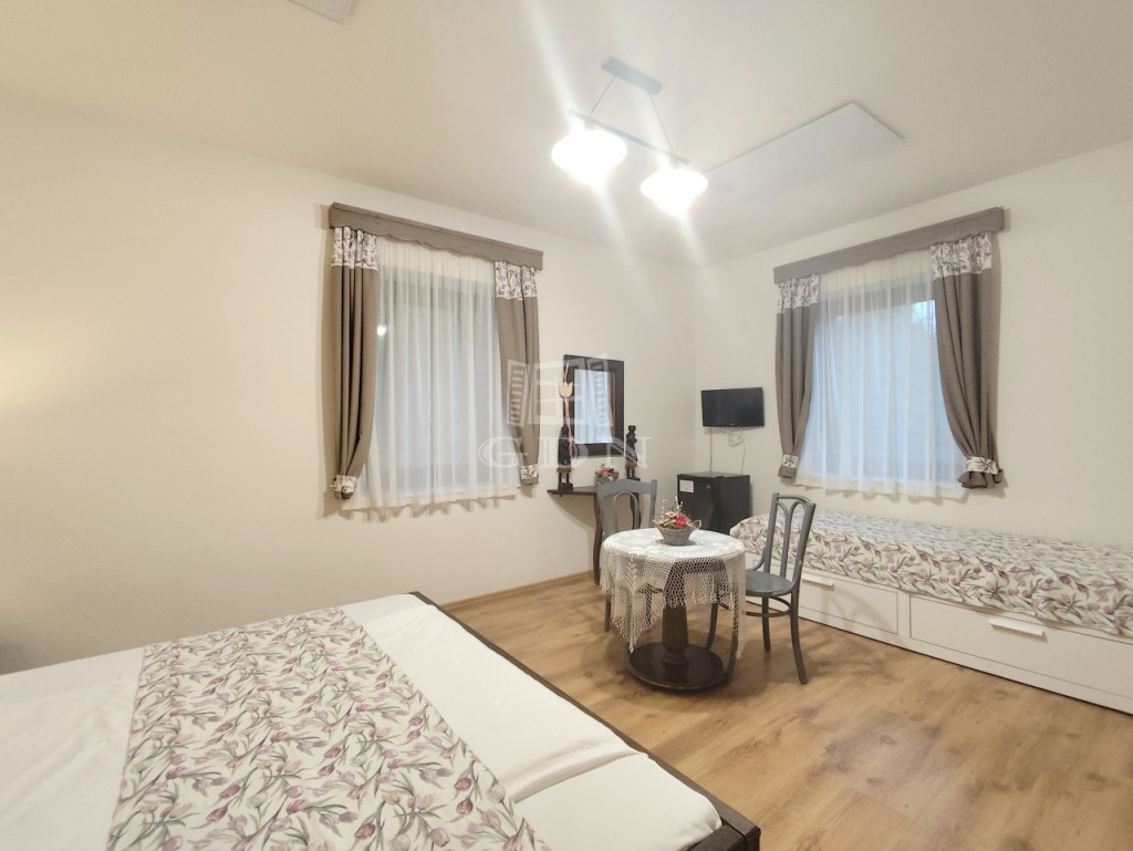 A házban 7 külön nyíló szoba található, mindegyik saját fürdőszobával, mely ritka, nagy érték.