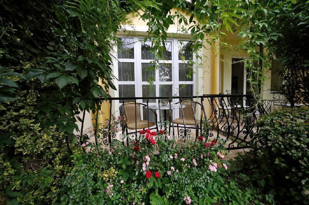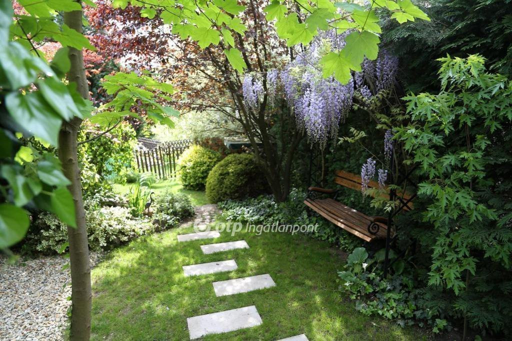 A gondosan karbantartott, a virágos és zöld növényekkel beültetett kert nyugodt, intim környezetet biztosít, miközben az épület előtti burkolt parkoló több gépjármű kényelmes elhelyezését teszi lehetővé.