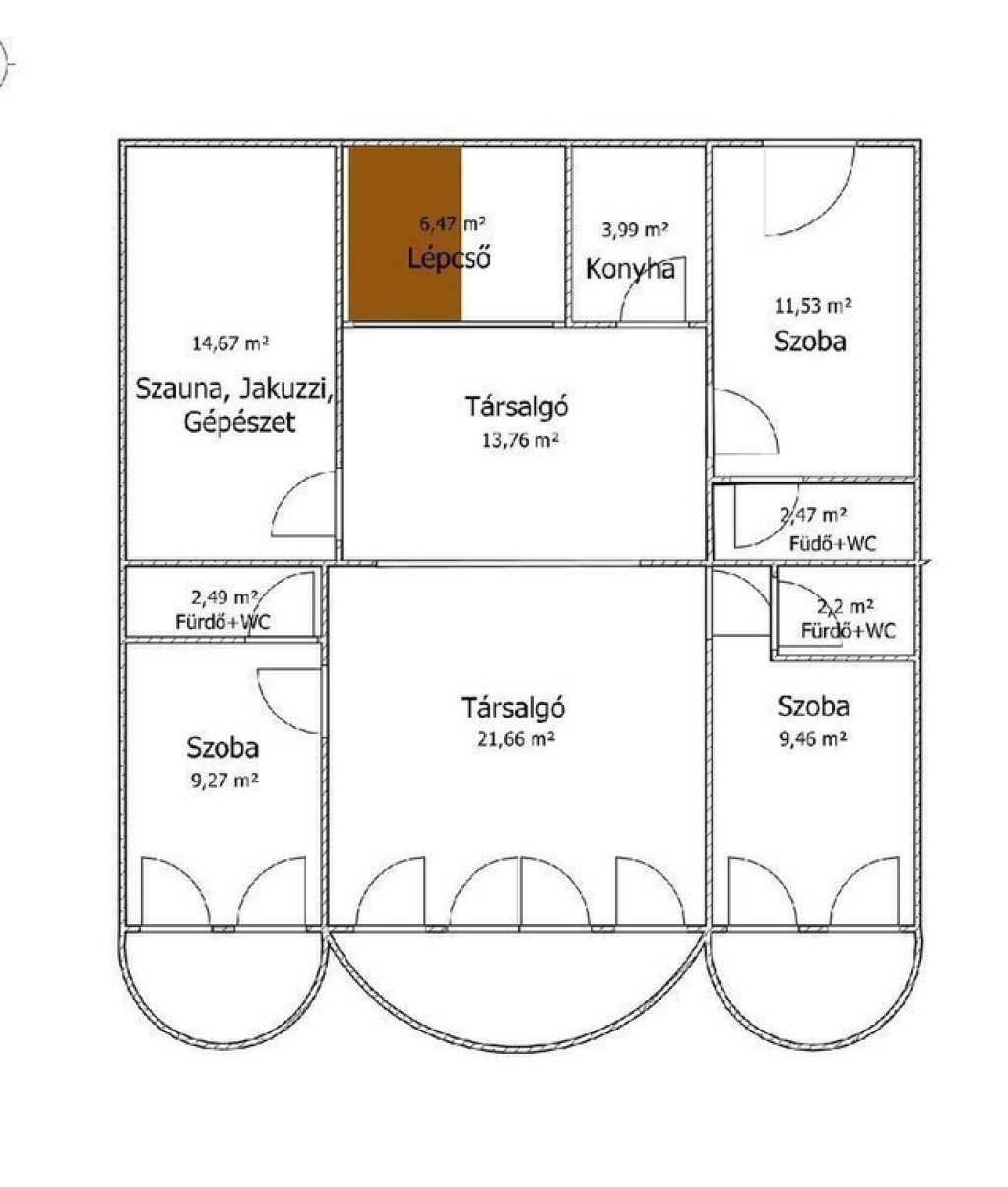 Az alsó szinten kialakított wellnessrészleg ? szaunával és jakuzzival ?, továbbá a külön mosókonyha és a közvetlen kertkapcsolattal rendelkező, hangulatos terasz nemcsak a mindennapi kikapcsolódást szolgálja, hanem tovább növeli az ingatlan értékét és vonzerejét, különösen vállalkozási célú hasznosítás esetén.