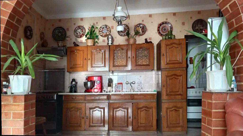 A 25-ös főút felől könnyen megközelíthető ingatlan Felnémet egyik csendes utcájában található, több melléképület, 28 m2-es száraz pince, garázs, 1100 m2-es telek tartozik hozzá. Az épület tufakő szerkezetű alsó szintjét a 80-as években szilikát tégla falazatú emeleti résszel bővítették. Az alsó szinten egy előszoba, három szoba, egy tágas nappali-étkező, konyha, egy kisebb belső konyha spejzzel, egy fürdőkádas fürdőszoba villanybojlerrel, külön bejáratú WC, közlekedő található. A beltéri falépcső a galériára vezet fel, melyből további két szoba, zuhanyzós fürdőszoba, erkély, panorámás terasz - szép kilátással a környező dombokra -, valamint egy befejezésre váró főzőfülke, és WC nyílik. A földszinti szobák, és a közlekedő padlóját laminált parketta borítja, az emeleti szobákban, és a galérián megmaradt az eredeti parketta, míg a többi helyiségbe hidegburkolat került. A 20 m2-es terasz felülete szigetelést kapott, tetővel fedett részén két apartman áll befejezetlenül, ide egykor panziót terveztek a lakók. A tető szerkezete ép, részleges felújítására sor került, az ingatlan karbantartásáról a tulajdonos lehetőség szerint folyamatosan gondoskodik. A földszinti rész lakályos, költözhető; a szaniterek, csempék cseréje a közelmúltban történt. Az emelet közepes állapotú, erősebb felújításra szorul. Az épület fa nyílászárókat kapott, az utcafronti ablakokra redőny került. A fűtés vegyestüzelésű kazánnal biztosított, ezenkívül a földszinten két fatüzelésű kályha gondoskodik az otthon melegéről. A ház jó elosztású, napfényes, tágas terekkel rendelkezik, méretéből adódóan elsősorban nagycsaládosok, és befektetők figyelmébe ajánlom. Amint a képek is tükrözik, hangulatos élettér alakítható ki e falak között, jöjjön el, és győződjön meg személyesen is az ingatlan adottságaiban rejlő lehetőségekről.