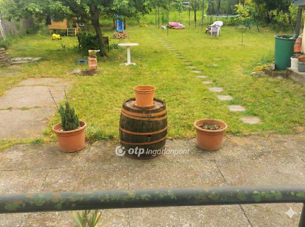 A ház egy 1074 m2-es, sík telken helyezkedik el, amely igazi kertbarátok álma: