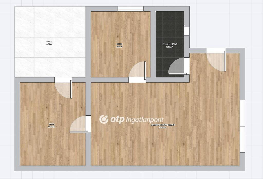 A belső térben két külön nyíló szoba, amerikai konyhás nappali és egy igényesen kialakított fürdőszoba található. Az egyik szobából közvetlen kijárat nyílik a teraszra, ami kellemes pihenőhelyet biztosít.
