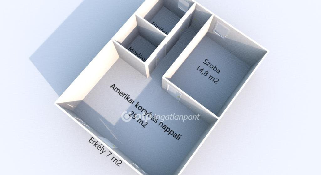 Helyiségek: Tágas, amerikai konyhás nappali, hálószoba és fürdőszoba (zuhanyzóval).