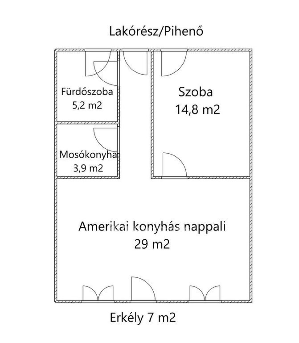 Helyiségek: Tágas, amerikai konyhás nappali, hálószoba és fürdőszoba (zuhanyzóval).