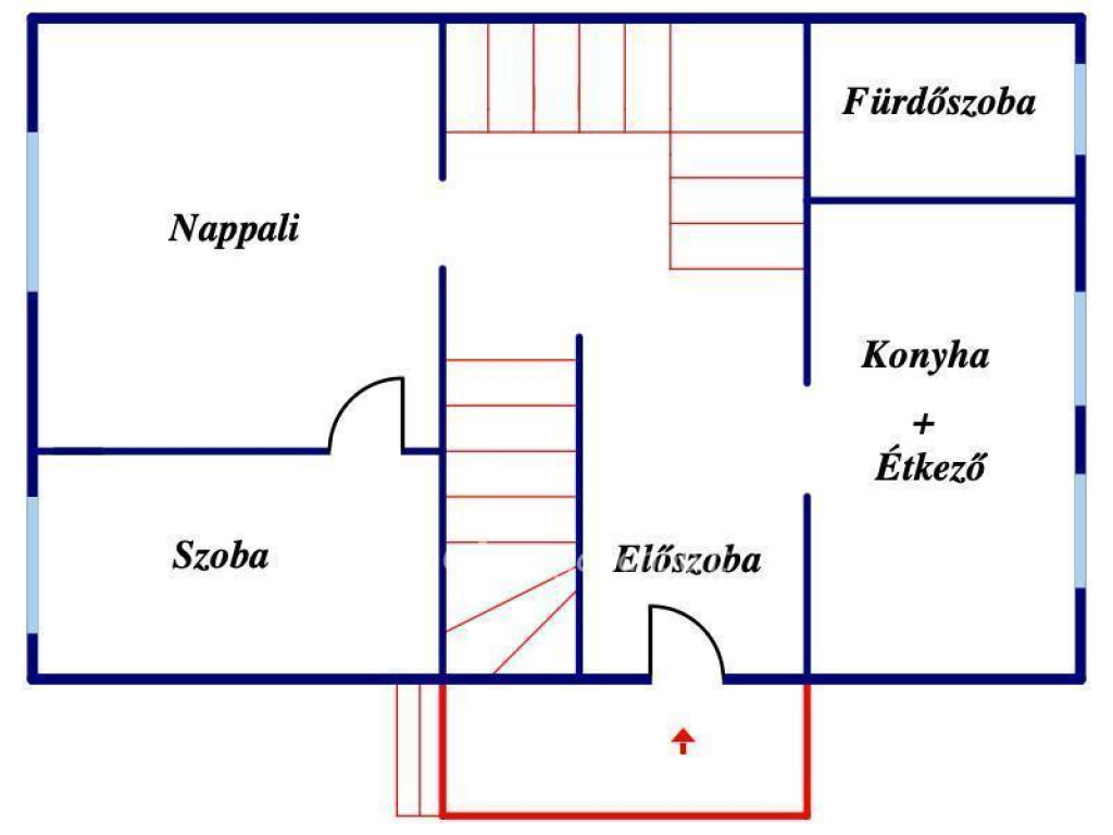 Földszint: előszoba, tágas nappali, konyha és fürdőszoba