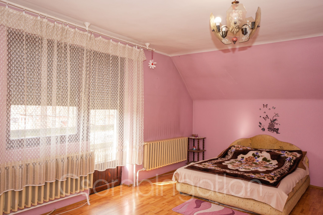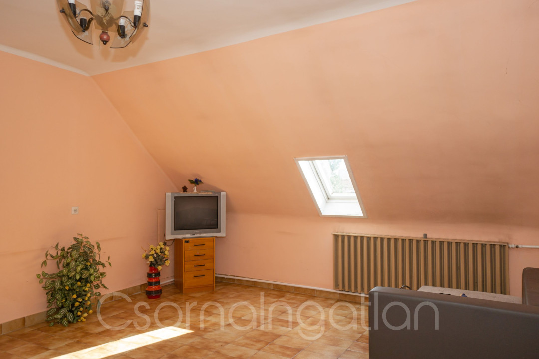 160 m2-es magasföldszintes, beépített tetőterű, természetközeli családi ház 1355 m2-es telken eladó.
