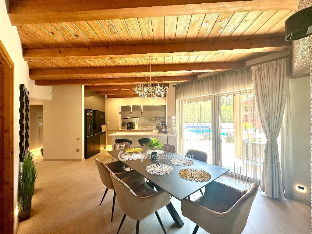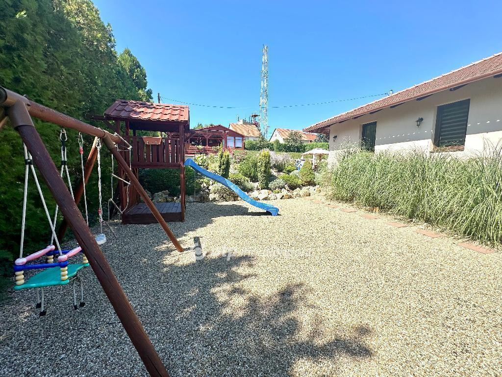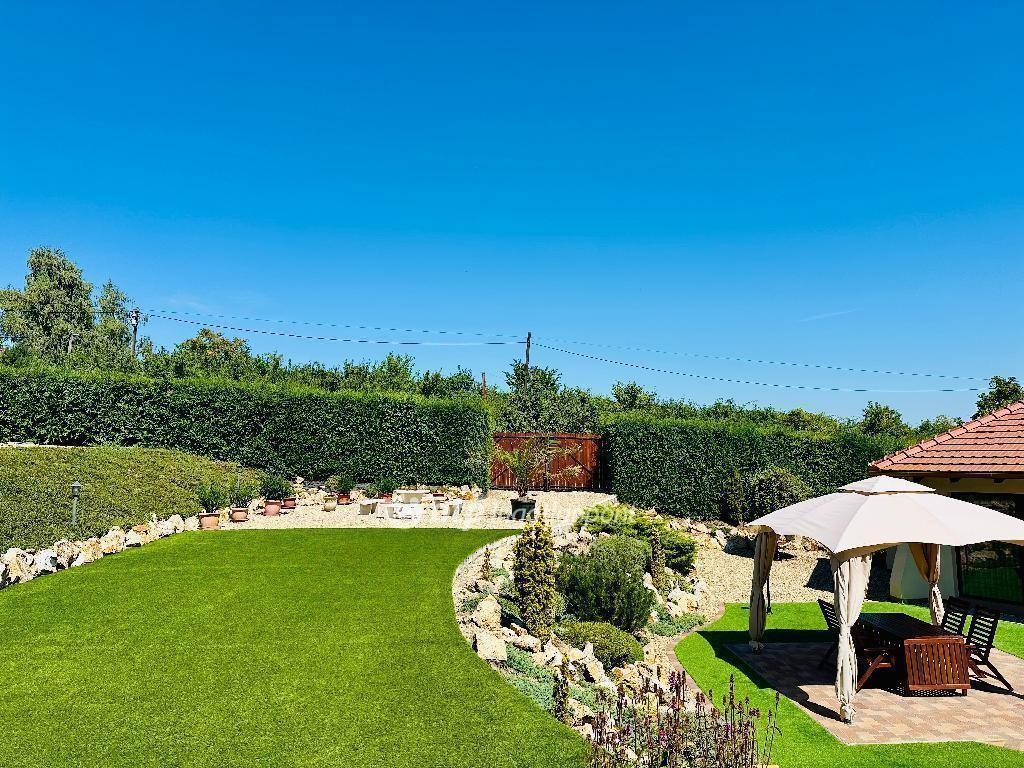 Az ingatlan igazi különlegességét azonban a hozzá tartozó, gondosan parkosított udvar adja. A zöld környezetben minden adott a pihenéshez és a kikapcsolódáshoz: kültéri medence, napfényes terasz, szaunaház, játszótér és hangulatos kerti szaletli várja a családot és barátokat. A kerti élményeket egy teljesen kialakított kültéri konyha teszi teljessé, amely ideális helyszín nyári összejövetelekhez.