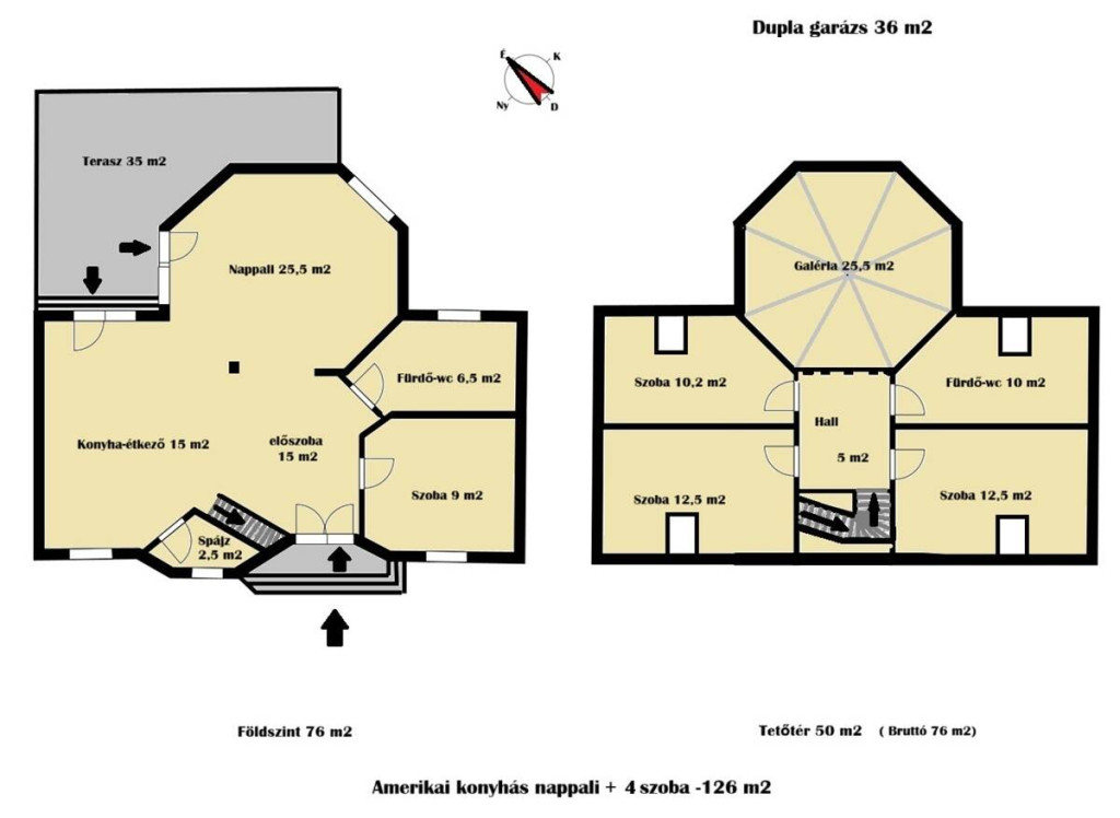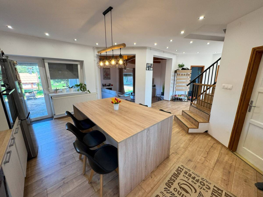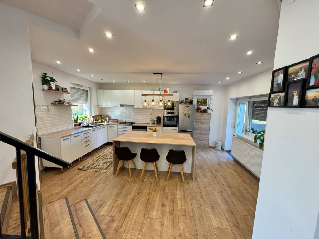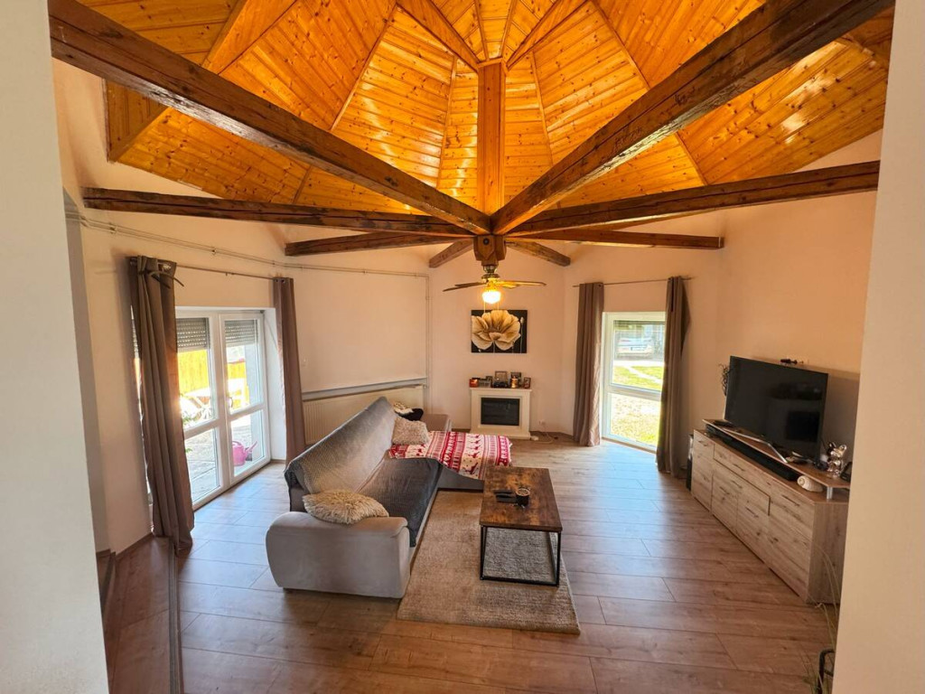 Az ingatlan amerikai konyhás nappalival, 4 szobával, 2 fürdőszobával,126 m2-es fűtött lakótérrel rendelkezik. Az udvaron 35 m2-es dupla garázzsal várja új tulajdonosát.