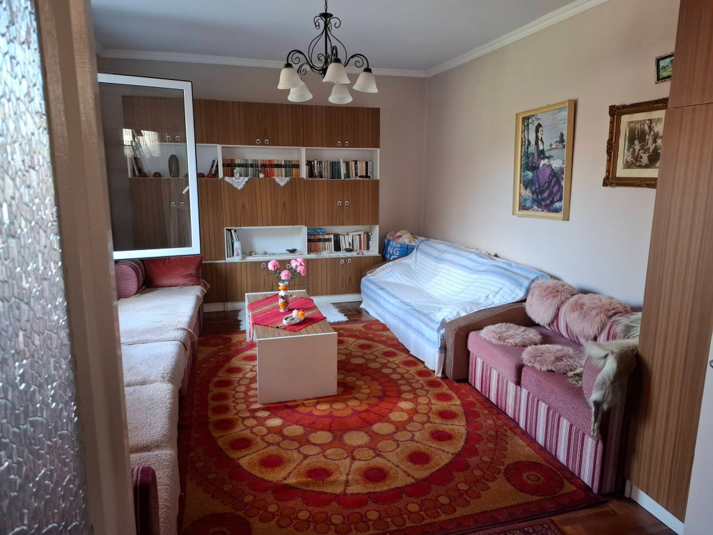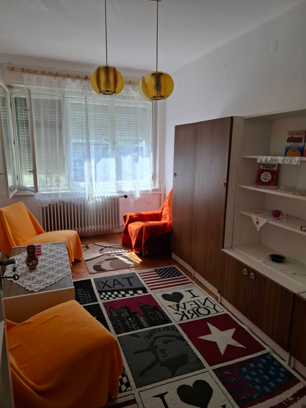 3 szoba + nappali+fedett terasz,mely az udvarra néz