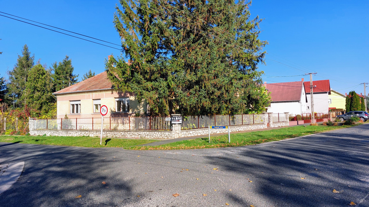 Olcsón és jó helyen kínáljuk ezt a saroktelken álló, 130 m²-es családi házat, melyhez 70 m² melléképület és 486 m² kert tartozik. Az ingatlan 1973-ban épült: terméskő lábazat, tégla falazat és hornyolt cseréptető, kőporos vakolattal. A ház körül terméskő alapon nyugvó fémkerítés található; a kertet drótkerítés határolja.